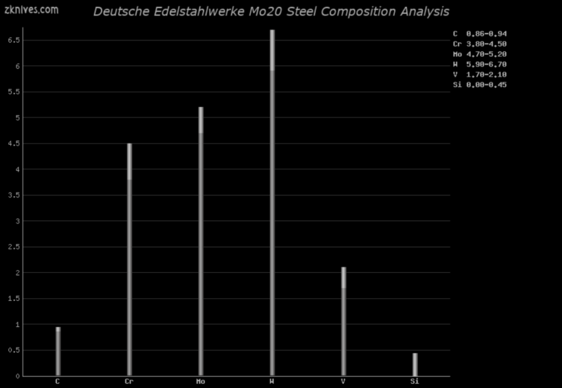 Mo20(Deutsche Edelstahlwerke) - 相当于德国的 AISI M2 钢。有关更多信息,请参见 M2 钢注释。