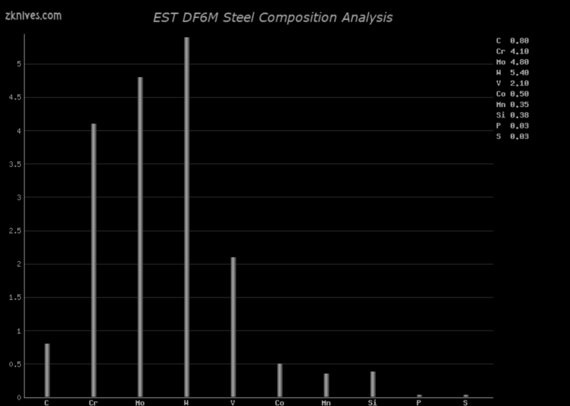 DF6M(EST) - DF6 的略微修改版本,添加了 1.00% 的钴。主要优点是更高的红色硬度和更好的延展性。有关更多信息,请参阅 AISI M2 工具钢注释。