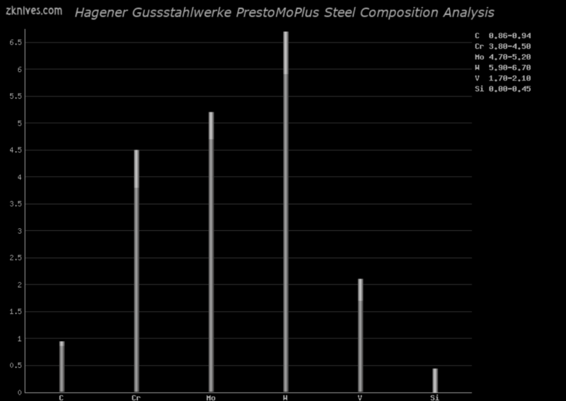 PrestoMoPlus(Hagener Gussstahlwerke) - 相当于德国 AISI M2 钢。有关更多信息,请参见 M2 钢注释。