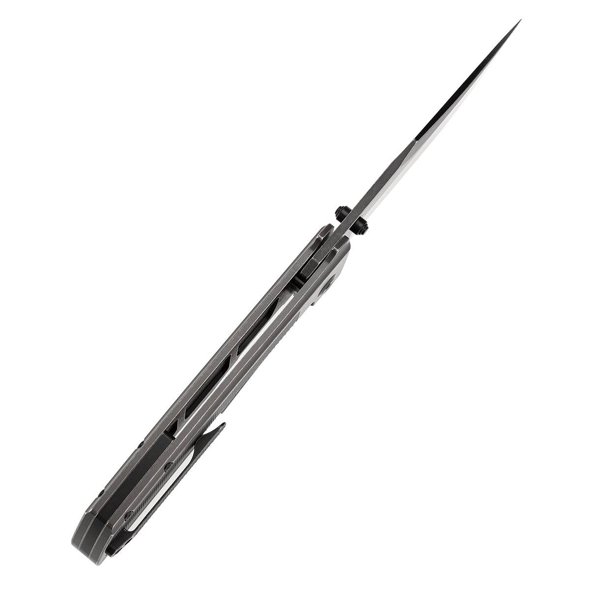 手柄由钛制成,带有倒角边缘,抓握舒适。它还采用了双重表面处理设计,增强了美学和功能。手柄顶部包括一个交叉防护罩,可有效防止手在使用过程中滑到刀片上。