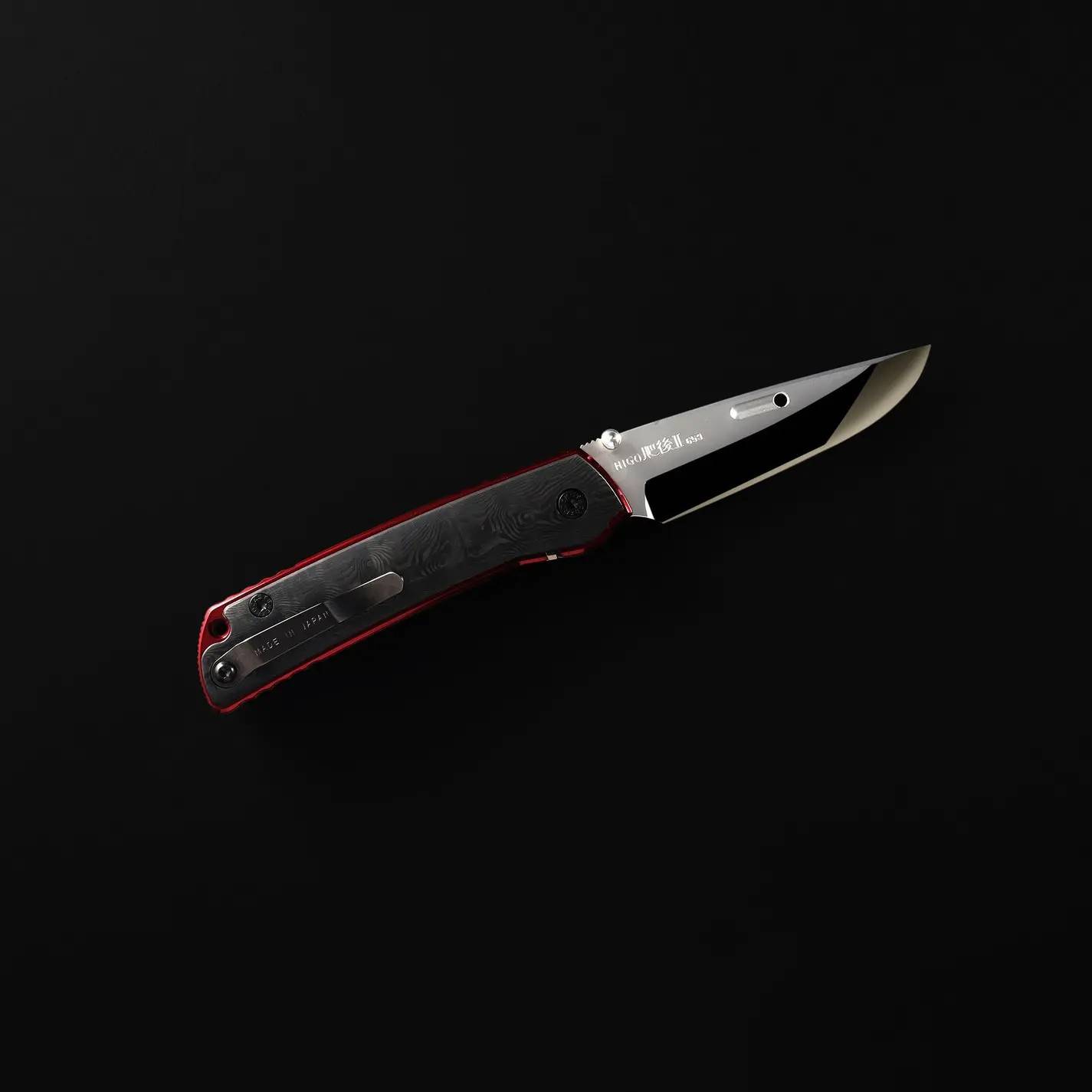 HIGOⅡ X-FCF-ZDP (BDR) 总重量: 138克 刀片长度: 89毫米 刀片材质 :ZDP189 覆以 VG10 刀片厚度: 3.2毫米 刀片硬度: 约 67 HRc 手柄材质: 钛合金与碳纤维 HIGOⅡX还有更多型号。这款采用碳纤维材质,...