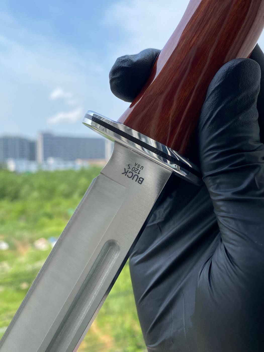 巴克0120CCS1传统狩猎直刀是户外爱好者长期以来对品质和性能的象征。它配备了一把7.375英寸(18.73厘米)长的420HC不锈钢剪刀尖刀片,刀片采用缎面处理,具有卓越的锋利度、耐用性和抗腐蚀性。刀柄采用红木(Cocobolo)材质,搭配镍银材质的尾铁和护手,将功能性与精致的美感完美结合。这款刀的设计注重精准性和多功能性,在各种狩猎和户外任务中表现出色。它还配备了一个优质皮革刀鞘,方便安全地存放,无论是野外还是营地,都是可靠的伙伴。