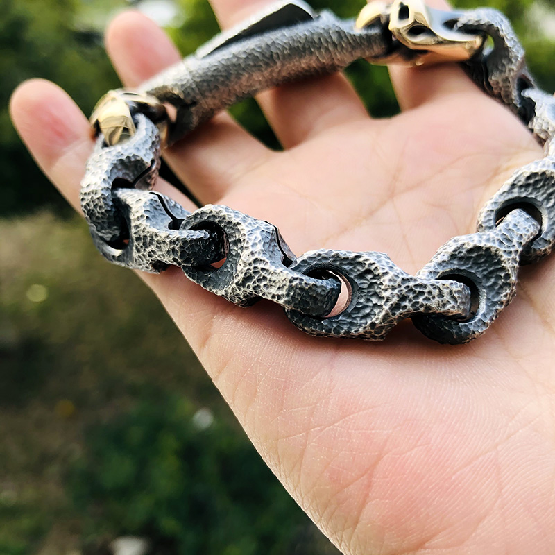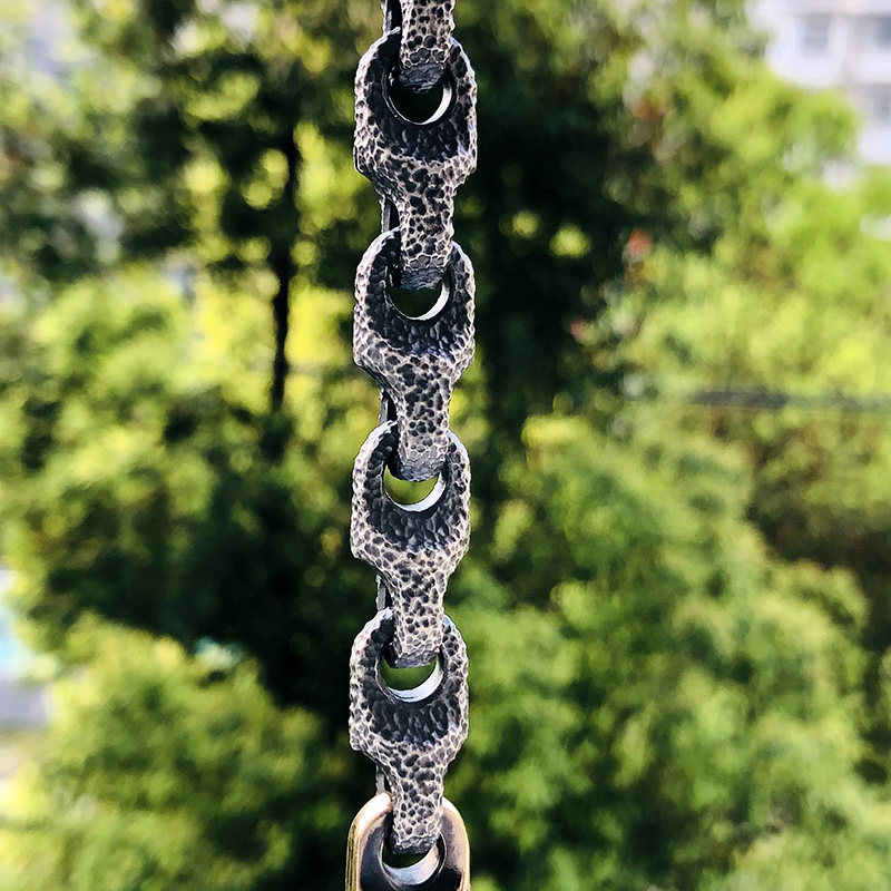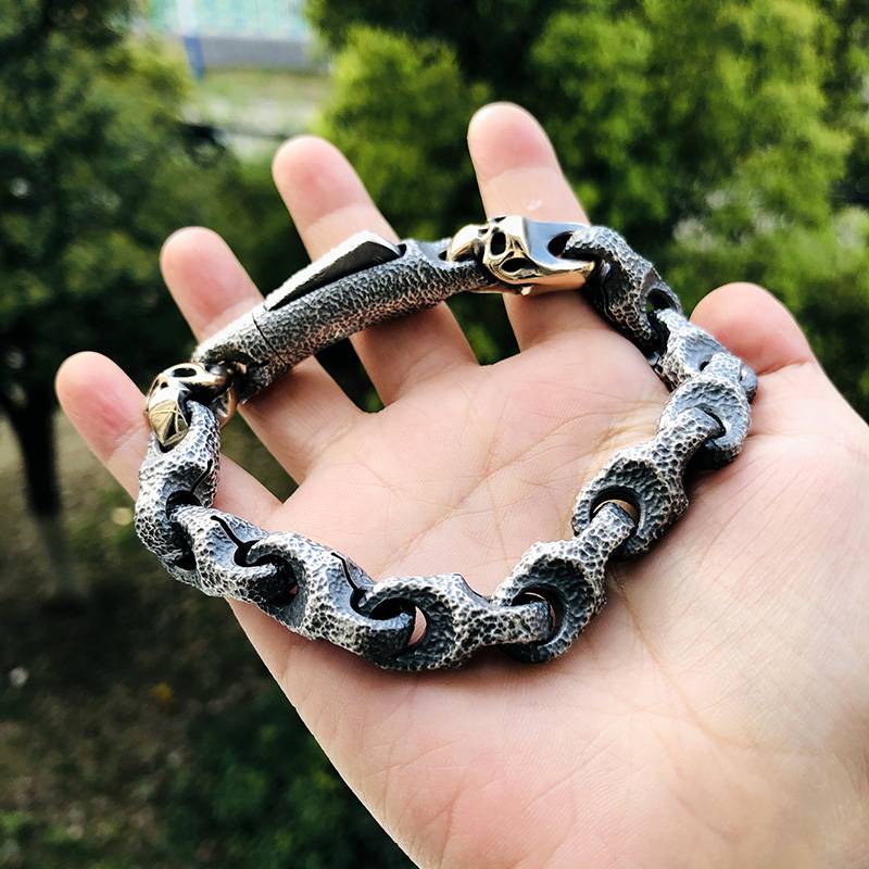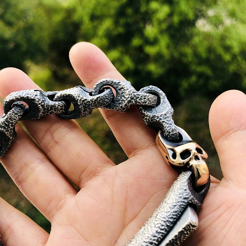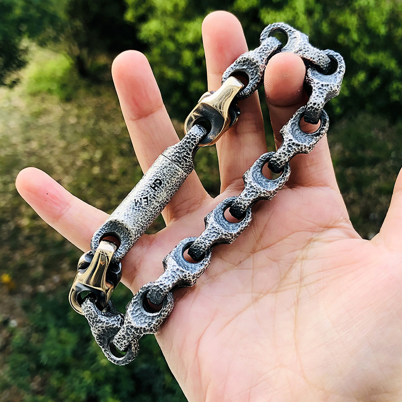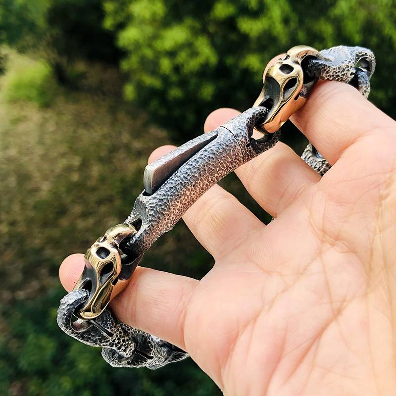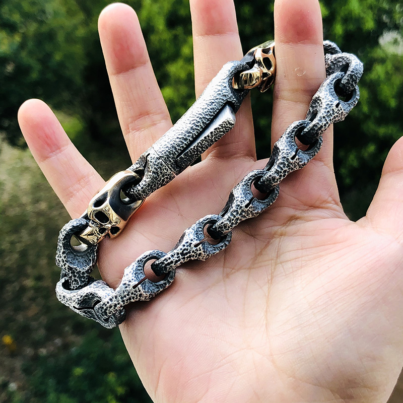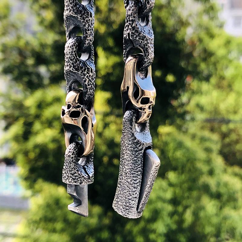 此款作为为铜斑蛇2019年bladeshow的展品,数量少之又少,据悉此款发布约为10个左右。由于每款产品都是手工制作,少量现货发售,很多产品都是预订方式,从展会之前我们就开始预订此款产品,经过将近两年时间才到货,预定周期比较长。产品整体采用925银制作而成,接口处拥有两个骷髅连接在一起。