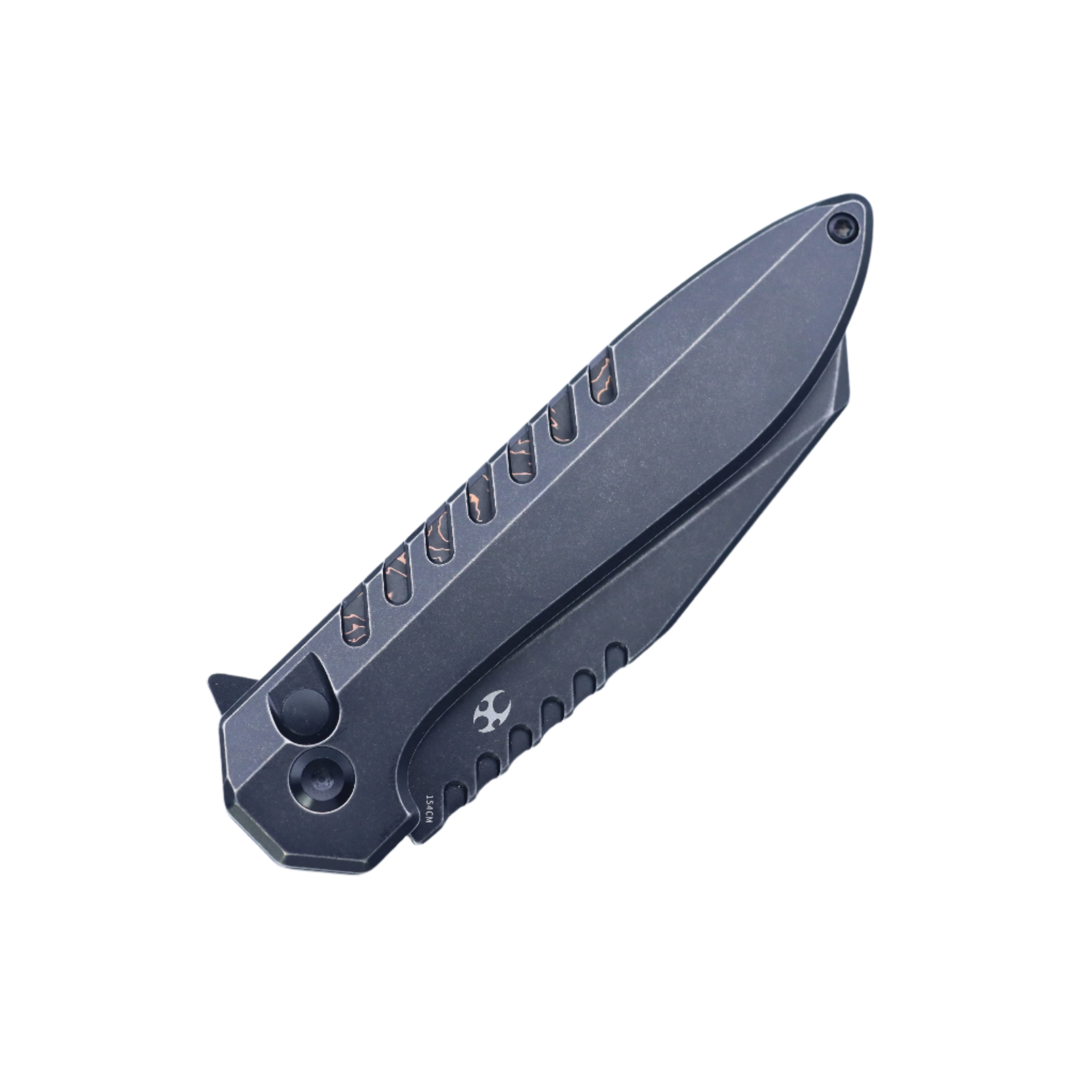 Wharncliffe 刀片由 154CM 优质钢制成,经过 HRC60 热处理,具有出色的边缘保持力和耐腐蚀性。其独特的书脊设计增强了视觉吸引力和耐用性,使其成为需要可靠切割性能的用户的完美选择。