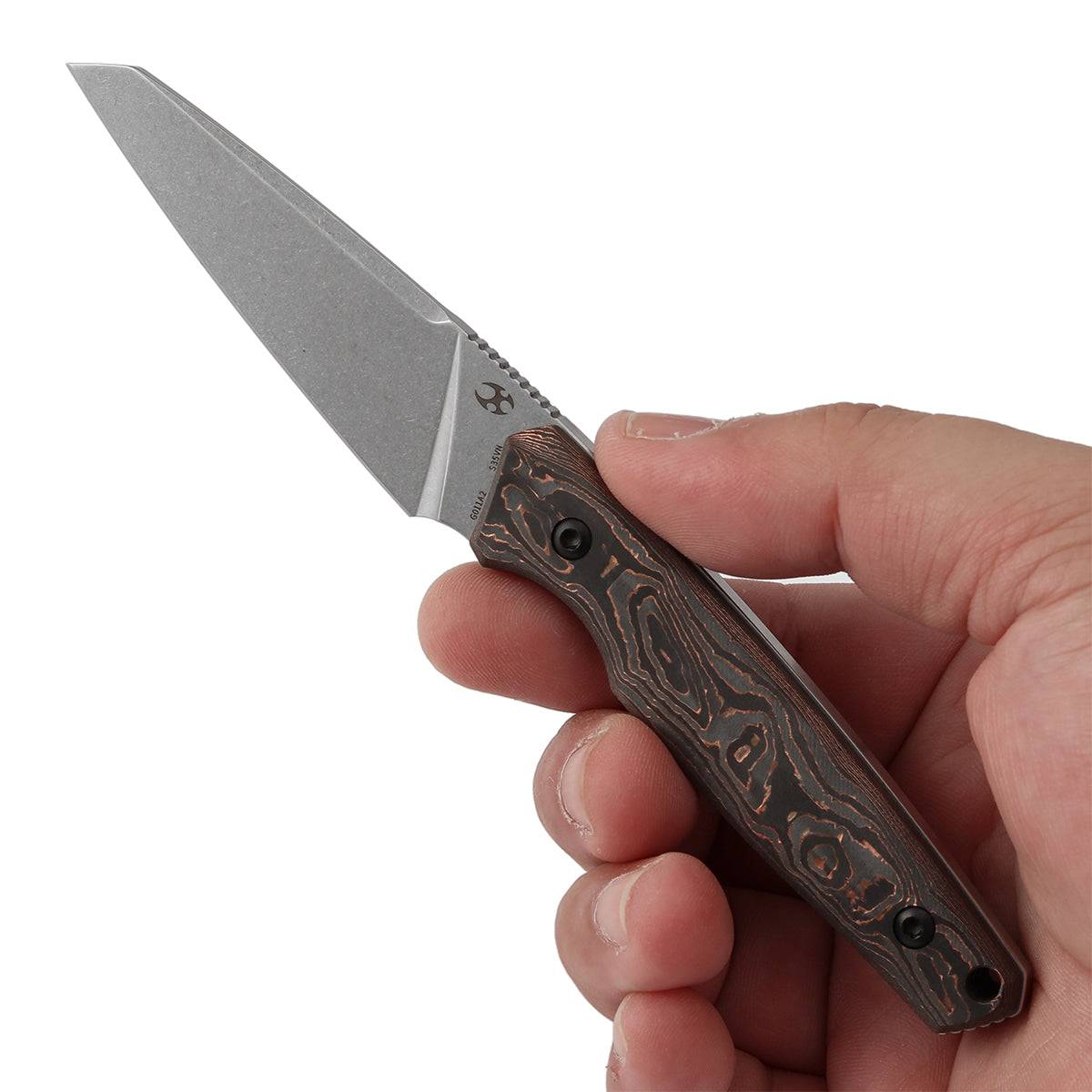 小巧实用的 EDC 固定刀片。反向 tanto 刀片带有直刀刃,非常适合实用风格的切割或游戏处理。