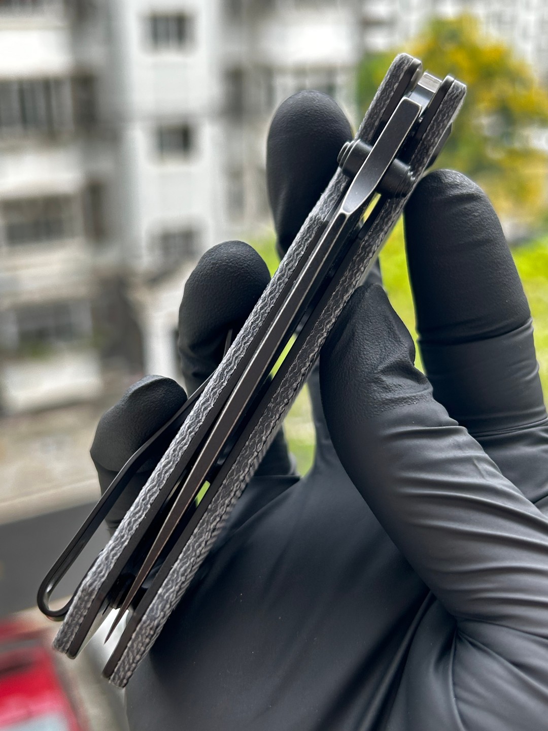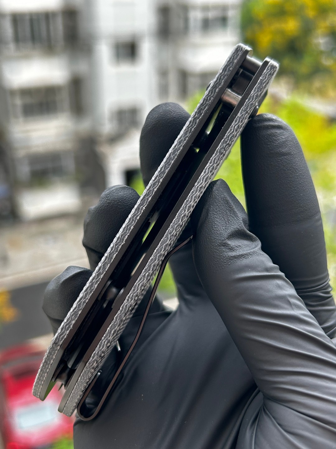 无论是由 Micarta、G10、碳纤维还是轻质铝制成,这款手柄都能提供可靠性、舒适性和精致风格的理想结合。符合人体工程学的轮廓形状和倒角边缘提供全天安全、无疲劳的抓握。搭配独特的图形或干净、低调的饰面,它增加了视觉特色,同时保持了功能性、严肃的 EDC 美学。