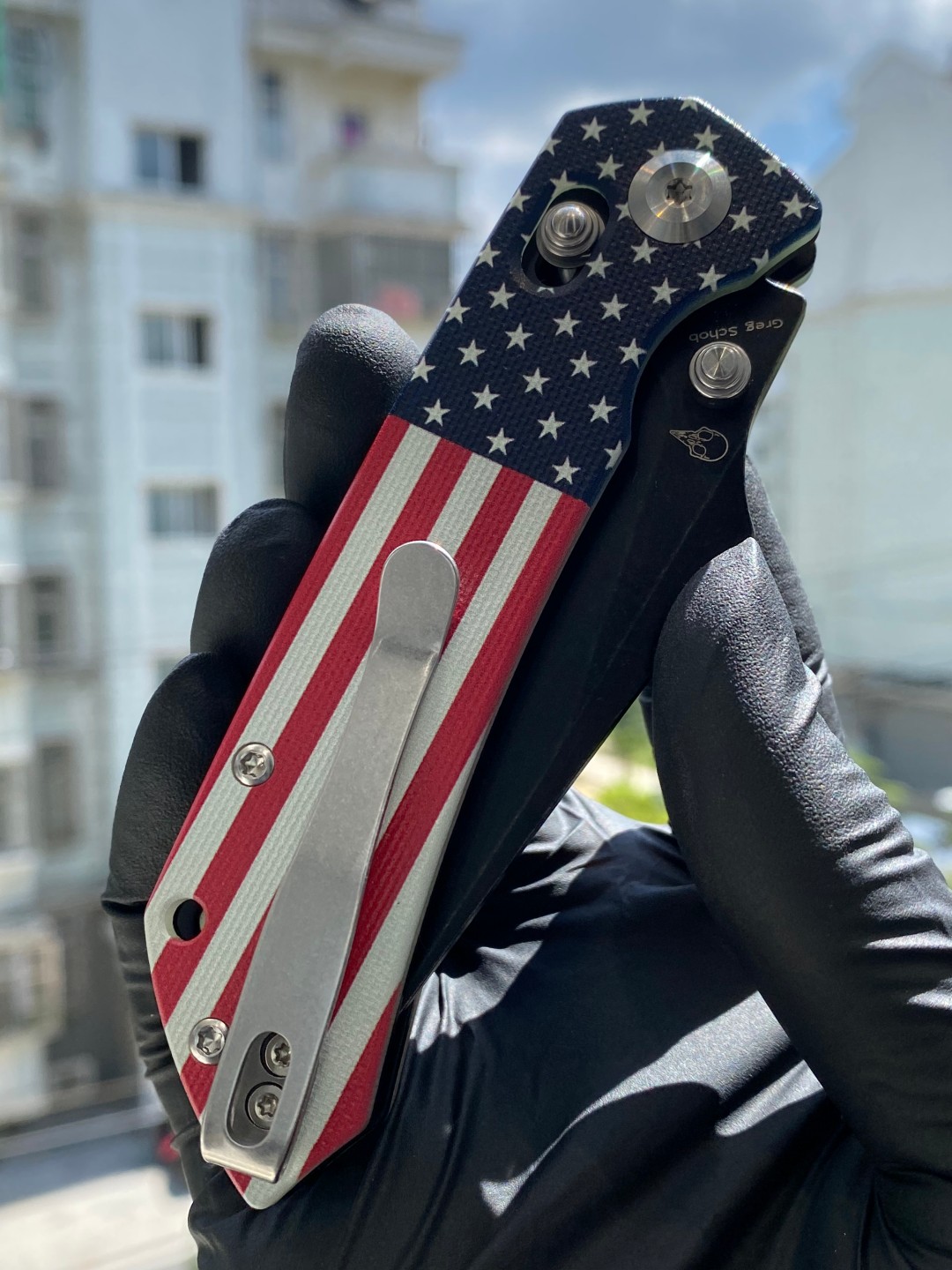 这种半透明的 G10 材料提供轻便而耐用的抓地力,将强度与视觉独特性相结合。手柄采用符合人体工程学的形状,带有倒角边缘,可提供全天舒适感,而大胆的美国国旗图案则以粗犷、EDC 就绪的态度带来出众的风格。