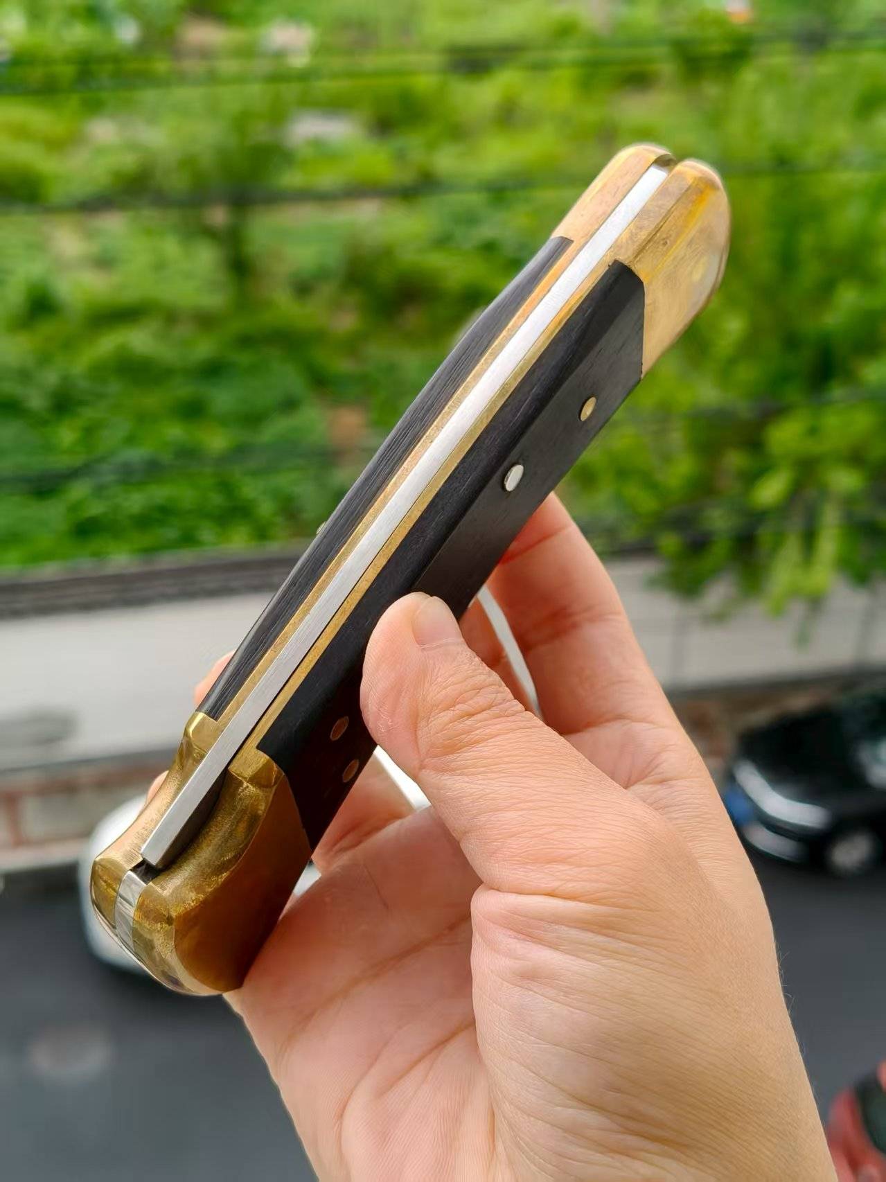 全新,原为客户的7天无理由退货,手柄黄铜有些自然氧化,后期使用问题正常售后。产品刀刃有不居中现象,非质量问题,在巴克品牌中非常常见。