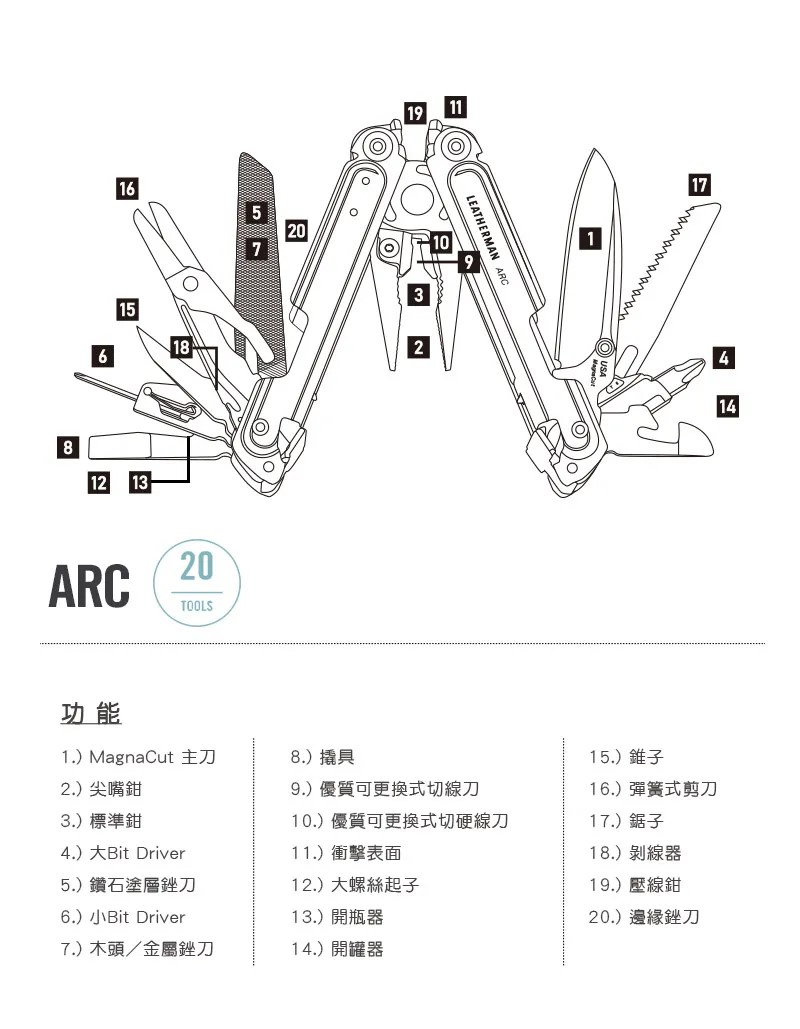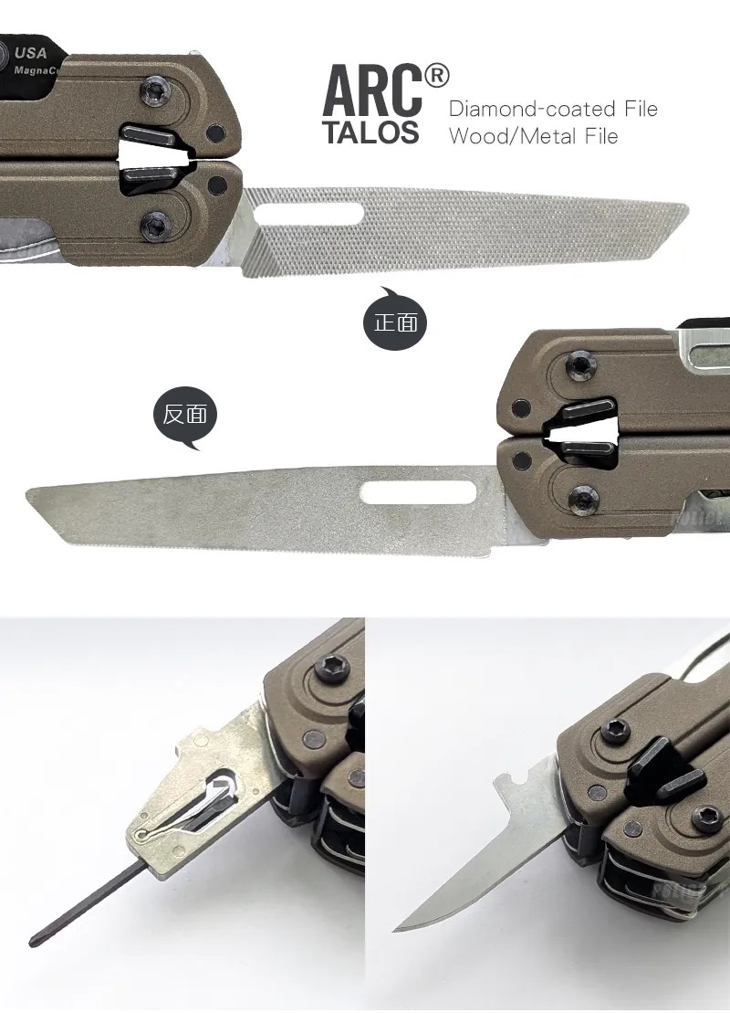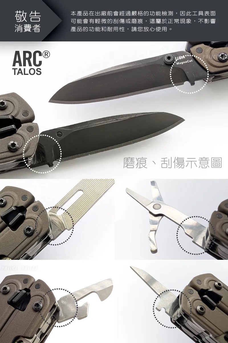 ARC 是首款采用 MagnaCut® 钢材的多功能工具,它集卓越的刀刃保持力、刀刃强度和耐腐蚀性于一身。从刀刃到表面处理,每一个细节都经过精心挑选,以确保最高的耐用性和长期性能。