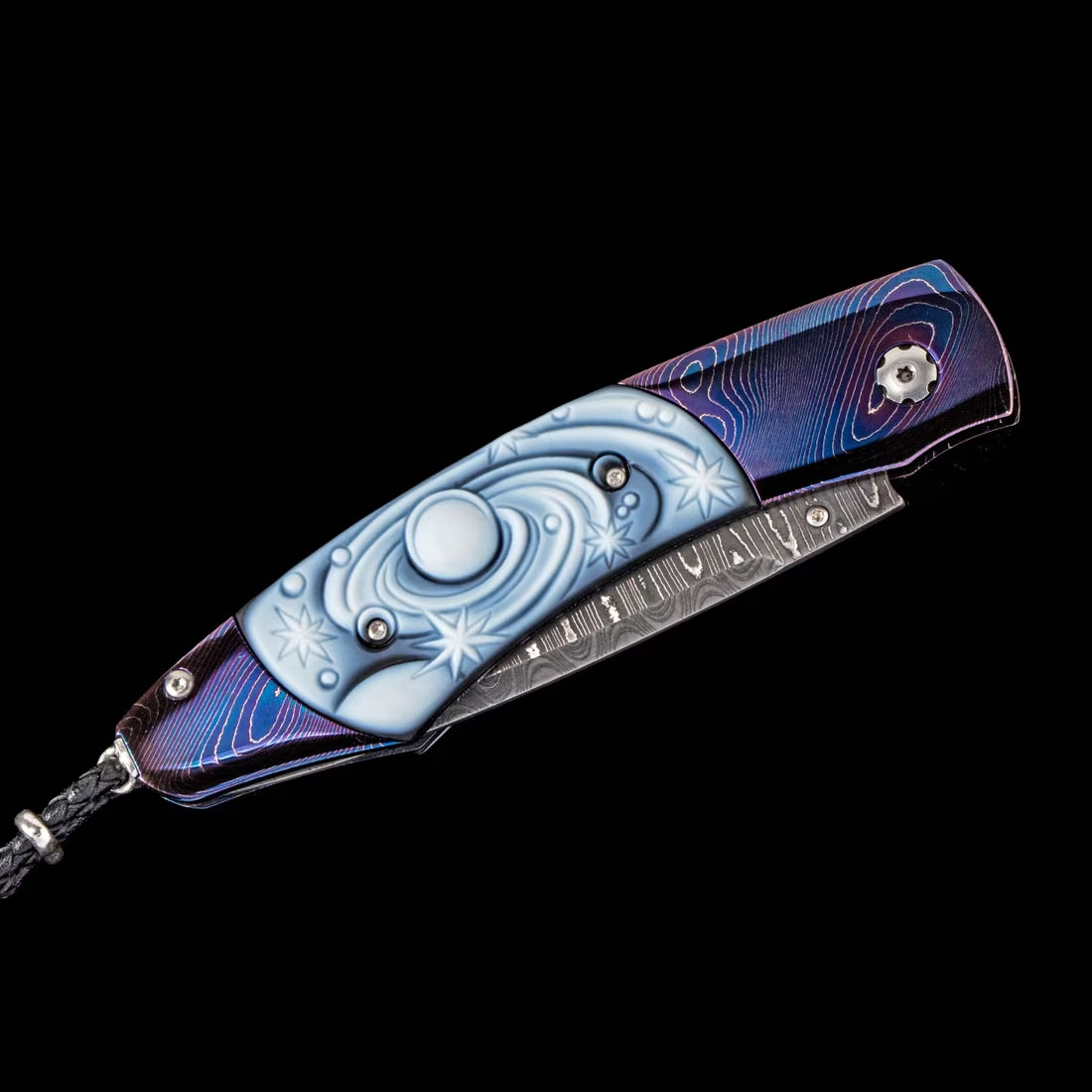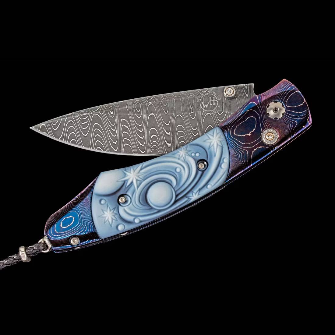 Spearpoint 的设计非凡,拥有全尺寸的安全握柄和多功能的深腹刀刃,完美体现了 William Henry 的核心理念——卓越的功能值得升华至极致的艺术。“Galaxy”系列融合了 William Henry 系列标志性的艺术性、高科技和手工锻造金属,彰显其独特的个性,值得终身佩戴。