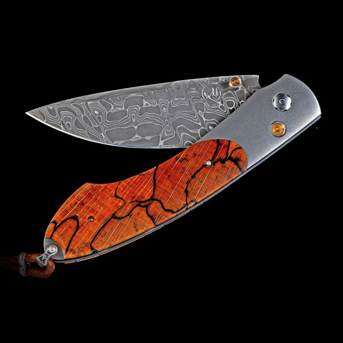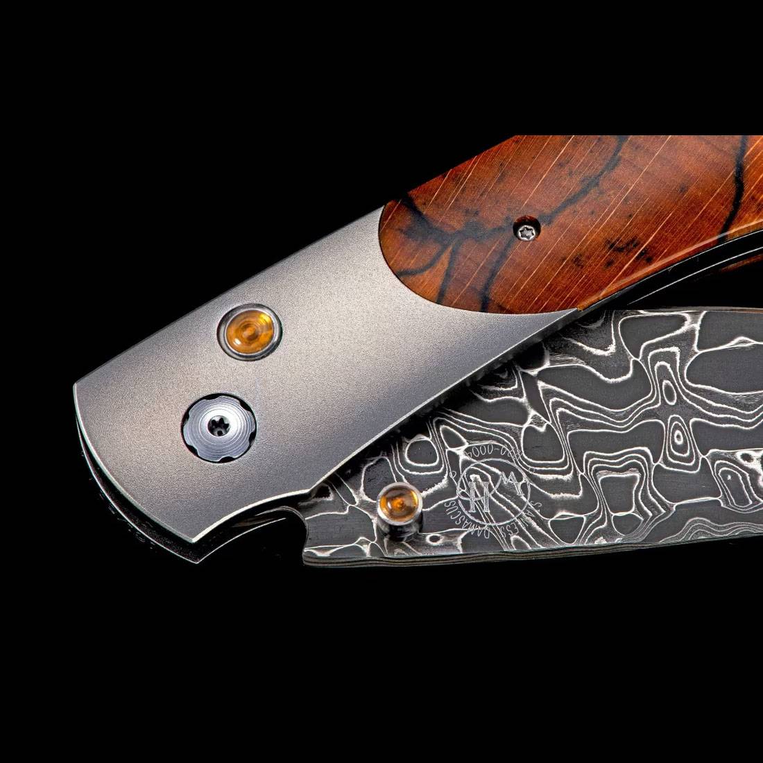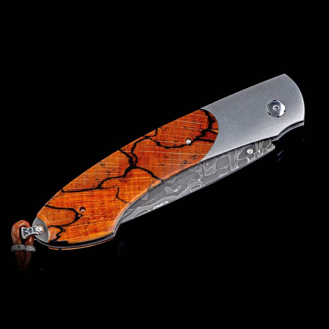 Spearpoint“森林格罗夫”系列采用轻盈而坚韧的航空级钛金属框架,并镶嵌着一块精美的橙色裂纹山毛榉木。刀刃由Chad Nichols手工锻造,采用“勇敢无畏”大马士革钢。单手按钮锁和拇指螺柱镶嵌着黄水晶。Spearpoint系列设计非凡,拥有全尺寸安全握持,并配有多功能深腹刀刃,完美体现了William Henry的核心理念——卓越的功能值得提升至卓越的艺术。“森林格罗夫”系列采用了William Henry系列标志性的珍稀材质和手工锻造金属,彰显独特的个性,值得终身佩戴和使用。