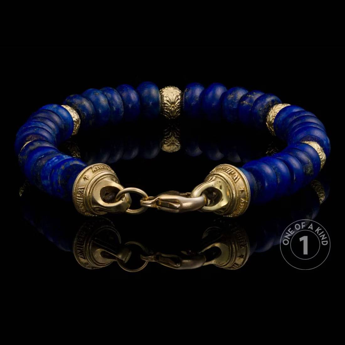 产品详情 独一无二 手镯 18K 黄金和青金石珠子 - 8.5 毫米 18K 黄金扣环及配件 尺寸:中号 产品编号:JC24017