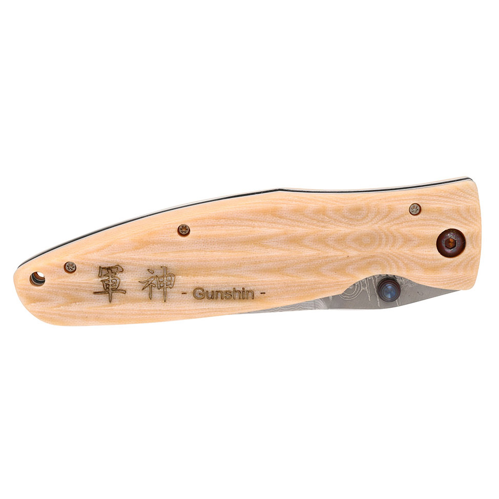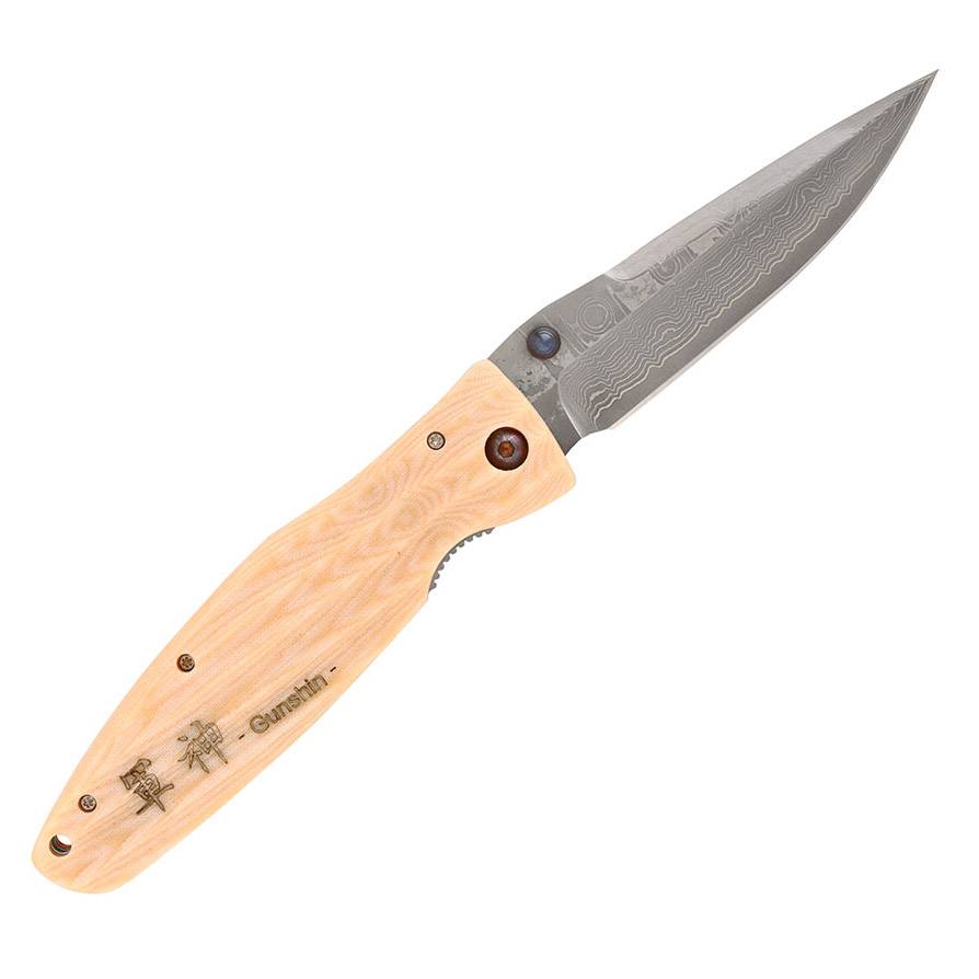 全长:213mm 刃长:94mm 重量:126克 刀片材质:大马士革 手柄材质:黄檀木