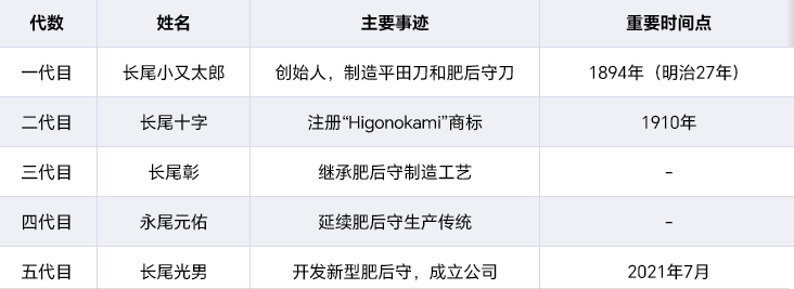 如今肥后守已经传承上百年,而永尾肥后守定驹也传承了五代,一些偏向收藏复古刀具的爱好者也试图寻找更老版本的肥后守刀具,那么不同年份制作的便更加稀有,使得有不少客户咨询小编具体的代目情况,所以今天特意整理如下,供大家参考: