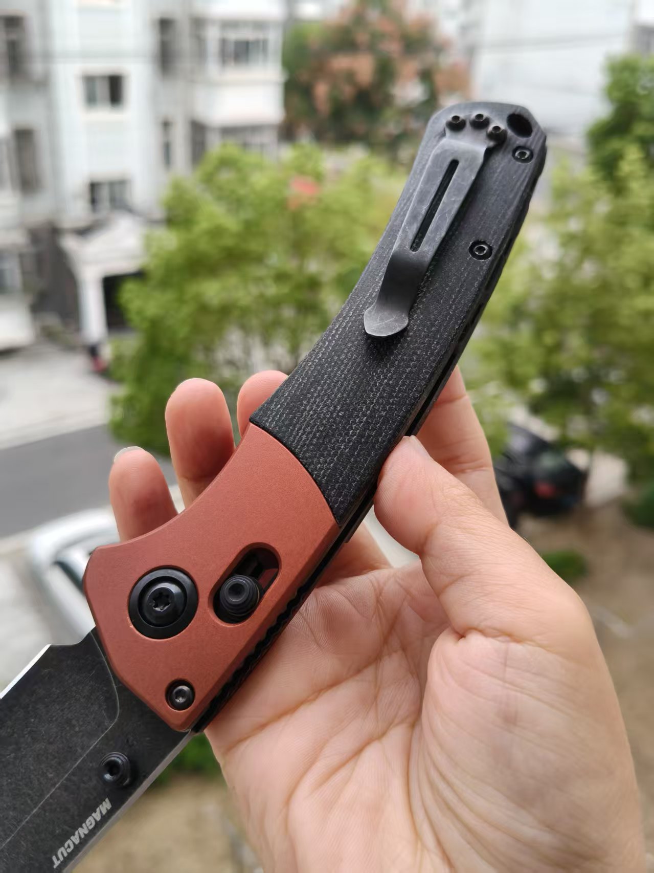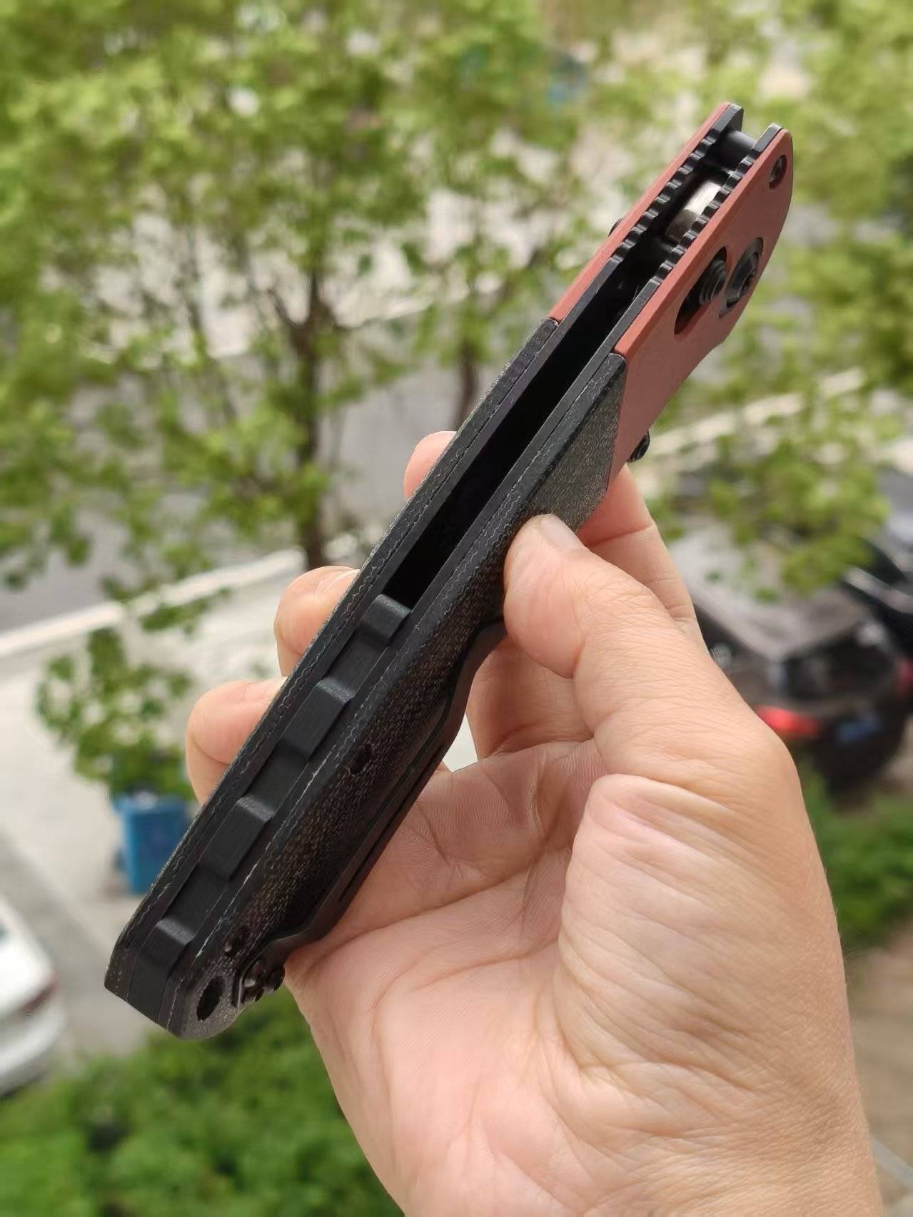 刀片样式:夹点 处理:6061-T6 阳极氧化铝垫片,配帆布米卡塔 口袋夹:是的