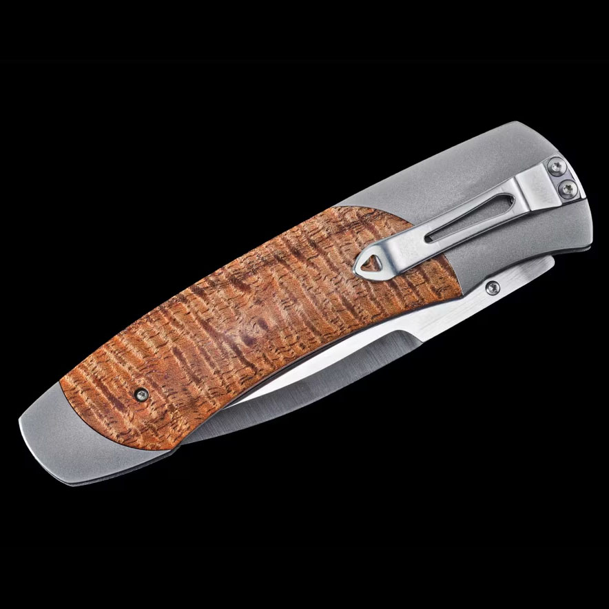 产品详情 A300-13 的刀架采用手工打磨的航空级钛合金,并镶嵌有卷曲的相思木。刀片采用 CPM 20CV 材质打造,这是一种坚固耐用的不锈钢材质,锋利如剃刀。此外,还配备了不锈钢配件和口袋夹,方便“刀尖朝下”安全...