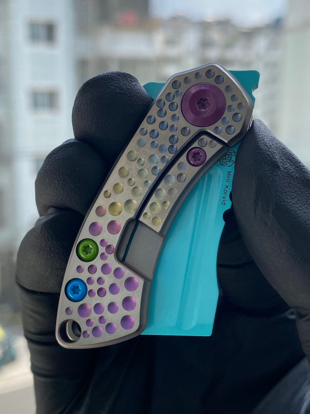 Mini 和 XL Korvids 简直是天壤之别,Justin 非常喜欢这两种尺寸的对比。一个尺寸可以完美地塞进口袋,另一个尺寸则可以轻松放入零钱袋。刀刃形状非常适合大多数实用任务。