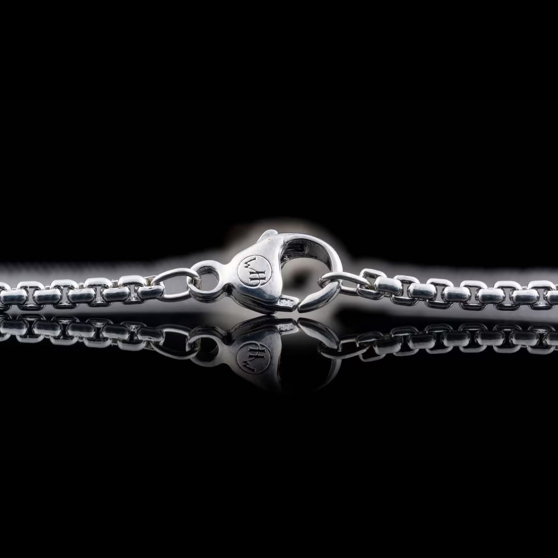 响尾蛇吊坠 (Rattler) 是一款引人注目的吊坠,其灵感源自响尾蛇尾巴的雕刻纯银底座,连接着一颗美丽的南洋珍珠,隐形镶嵌,营造出色彩、纹理和形状的浑然一体、意想不到的和谐统一。吊坠搭配一条精致的纯银威尼斯盒形链条,轻度氧化,手工抛光。这款吊坠体现了威廉·亨利 (William Henry) 的核心设计风格——低调而强烈。