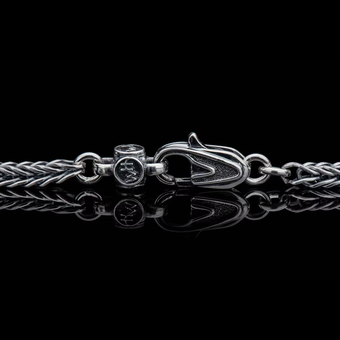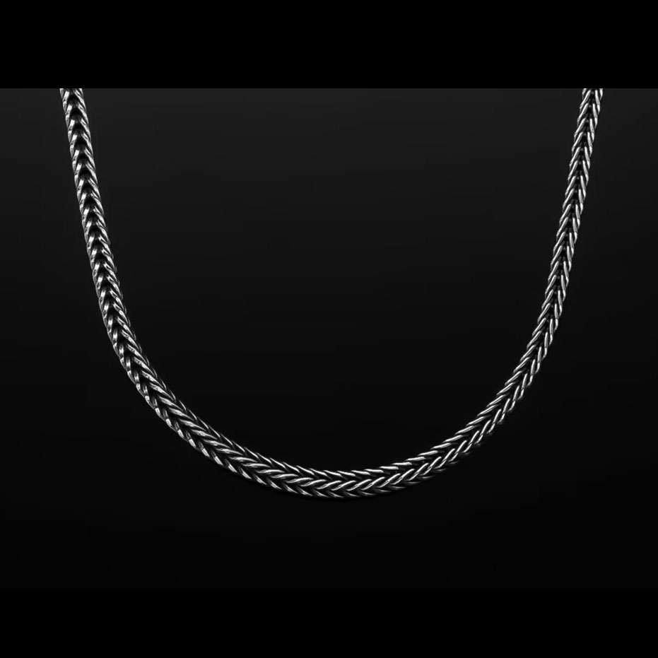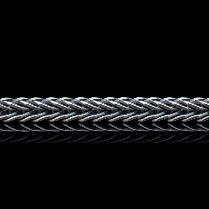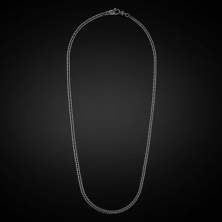 这款纯银狐尾链大胆、柔韧、流畅,如同蛇形,独树一帜。精美的氧化工艺和手工抛光,使其复杂的图案环绕颈间,令人目不转睛。市面上狐尾图案的链条种类繁多,但真正能独立升华至艺术境界的却寥寥无几。搭配我们定制的龙虾扣,并提供多种尺寸选择。