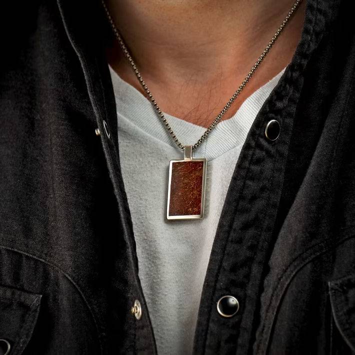 产品详情 威廉·亨利 (William Henry) 演绎经典之作。“恐龙巅峰 (Dino Pinnacle)”以稀有的恐龙骨骼化石为特色,这些化石可追溯至一亿年前,并镶嵌于纯银材质之上。背面饰有精致的细节和缎面雕刻面板。搭配纯银链...