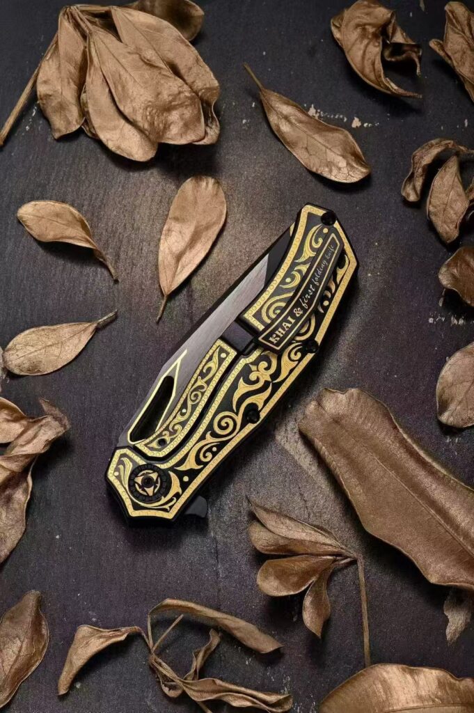 在艺术的长河中,巴洛克风格以其独特的魅力闪耀着光芒,而KHAI Gold Nocturne正是这一风格的完美诠释。这款折刀将巴洛克艺术的核心精神融入每一个细节,展现出厚重、奢华、对称且充满流动感的雕刻语言,仿佛将17世纪欧洲宫廷的辉煌重现于掌间。