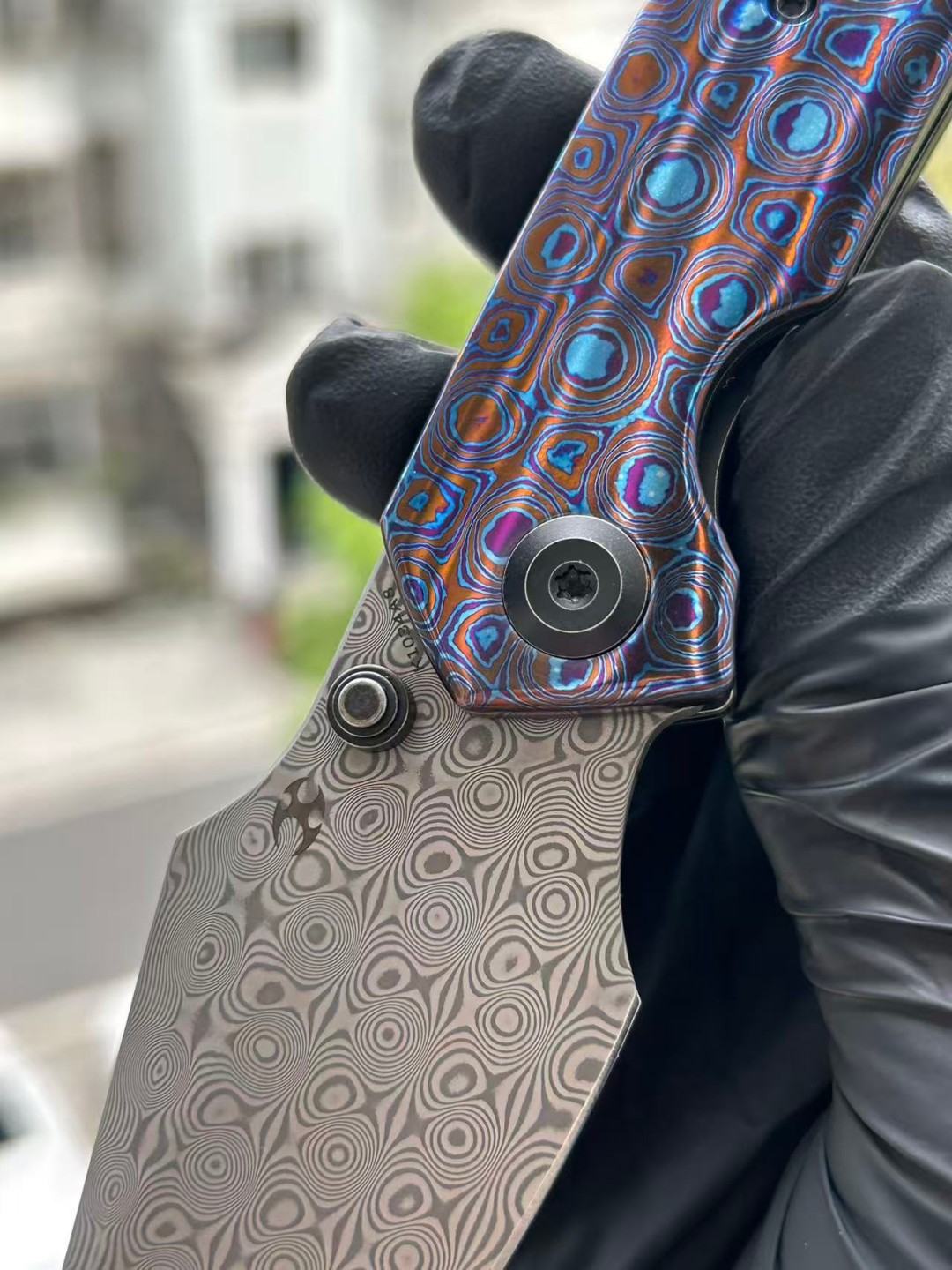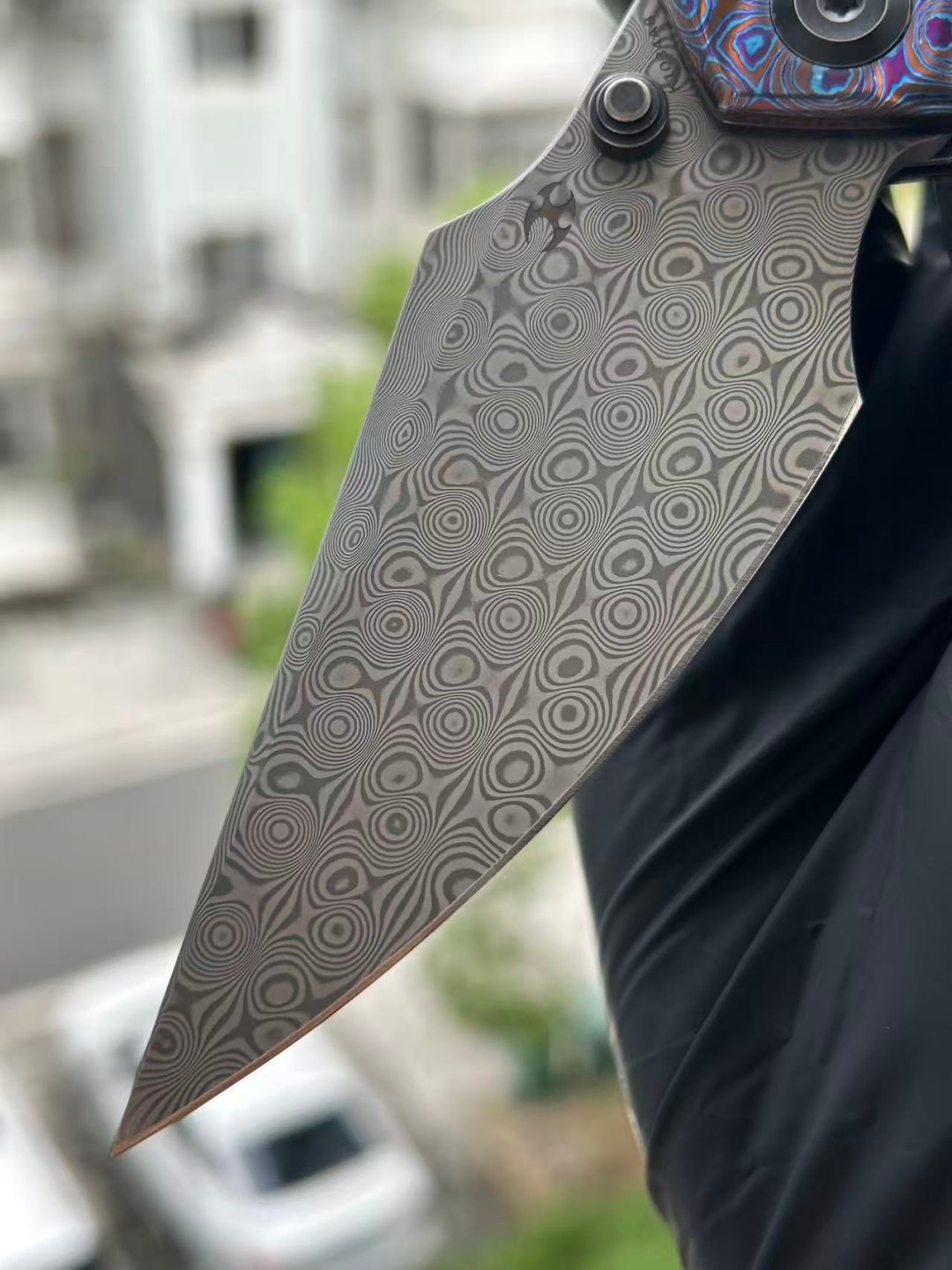 我们使用的大马士革钢是9Cr和440C不锈钢的优质复合材料,这与低质量的钢材有所不同。这是一款真正的多层不锈钢。大马士革钢——并非廉价刀具中常见的简单蚀刻或图案仿造品。与易生锈的传统高碳大马士革钢不同,这款不锈钢大马士革钢兼具卓越的耐用性和耐腐蚀性,非常适合长期使用。与 Damasteel 等高端不锈钢大马士革钢相比,我们的钢材在质量和性能上均超越了 Kershaw 等品牌常用的碳基大马士革钢。