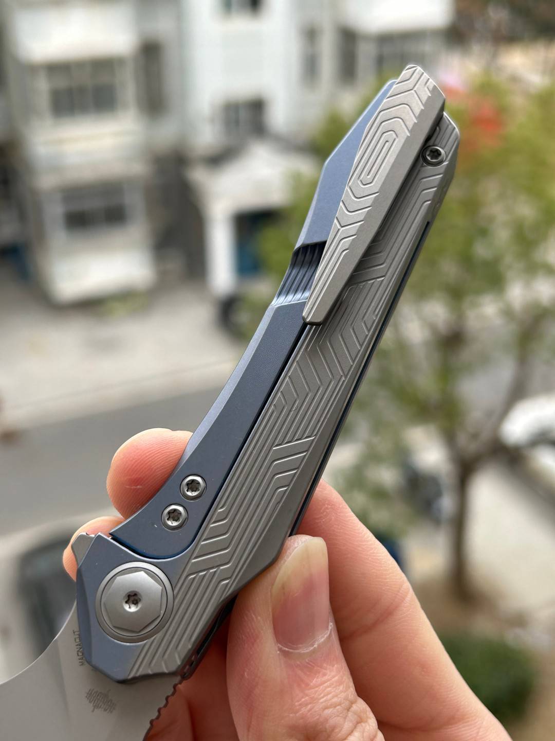 规格 刀片材质:MagnaCut 刀片表面处理:精细石洗 手柄材质:钛 手柄颜色:蓝色+白色石洗 总长度:8.04 英寸/204.3 毫米 闭合长度:4.51 英寸/114.6 毫米 刀片长度:3.53 英寸/89.7 毫米 刀片厚度:0.1...