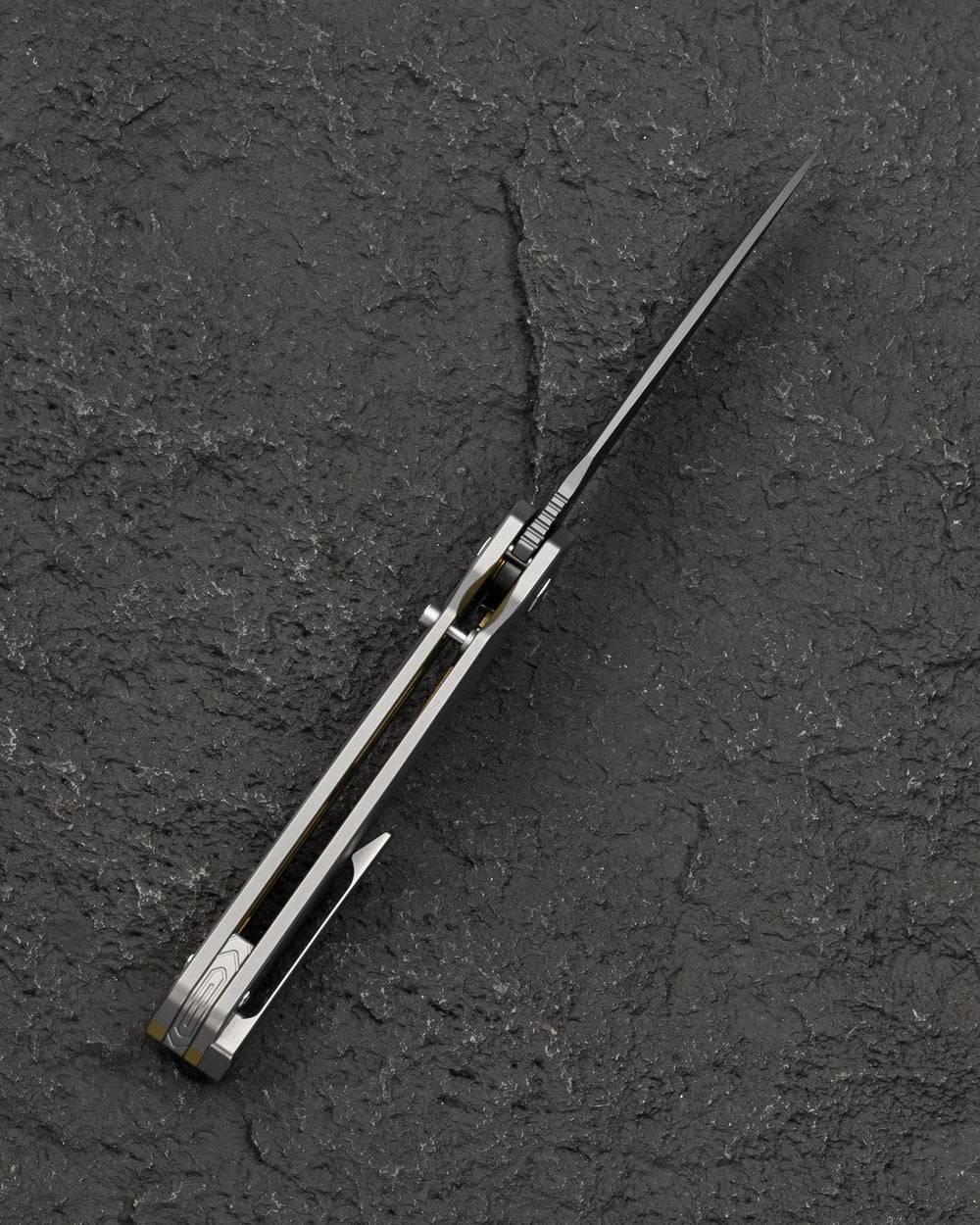 规格 刀片材质:MagnaCut 刀片表面处理:灰色PVD 手柄材质:钛 手柄颜色:青铜色+白色石洗 总长度:8.04 英寸/204.3 毫米 闭合长度:4.51 英寸/114.6 毫米 刀片长度:3.53 英寸/89.7 毫米 刀片厚度:0....