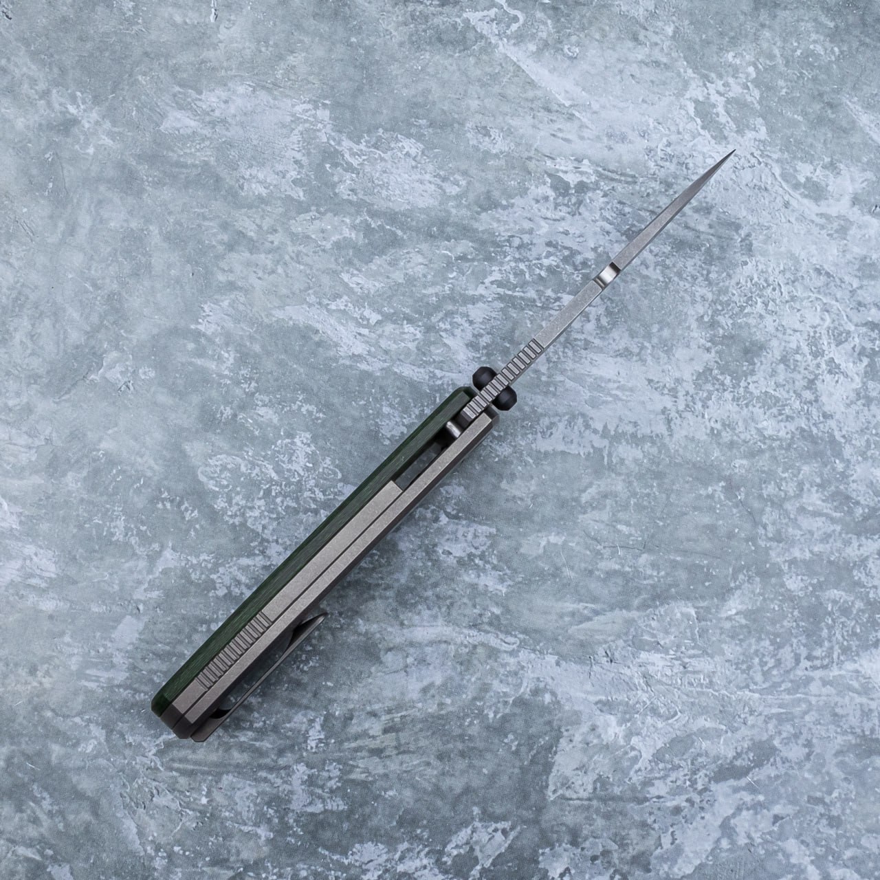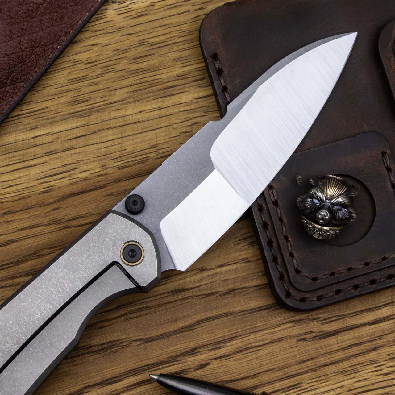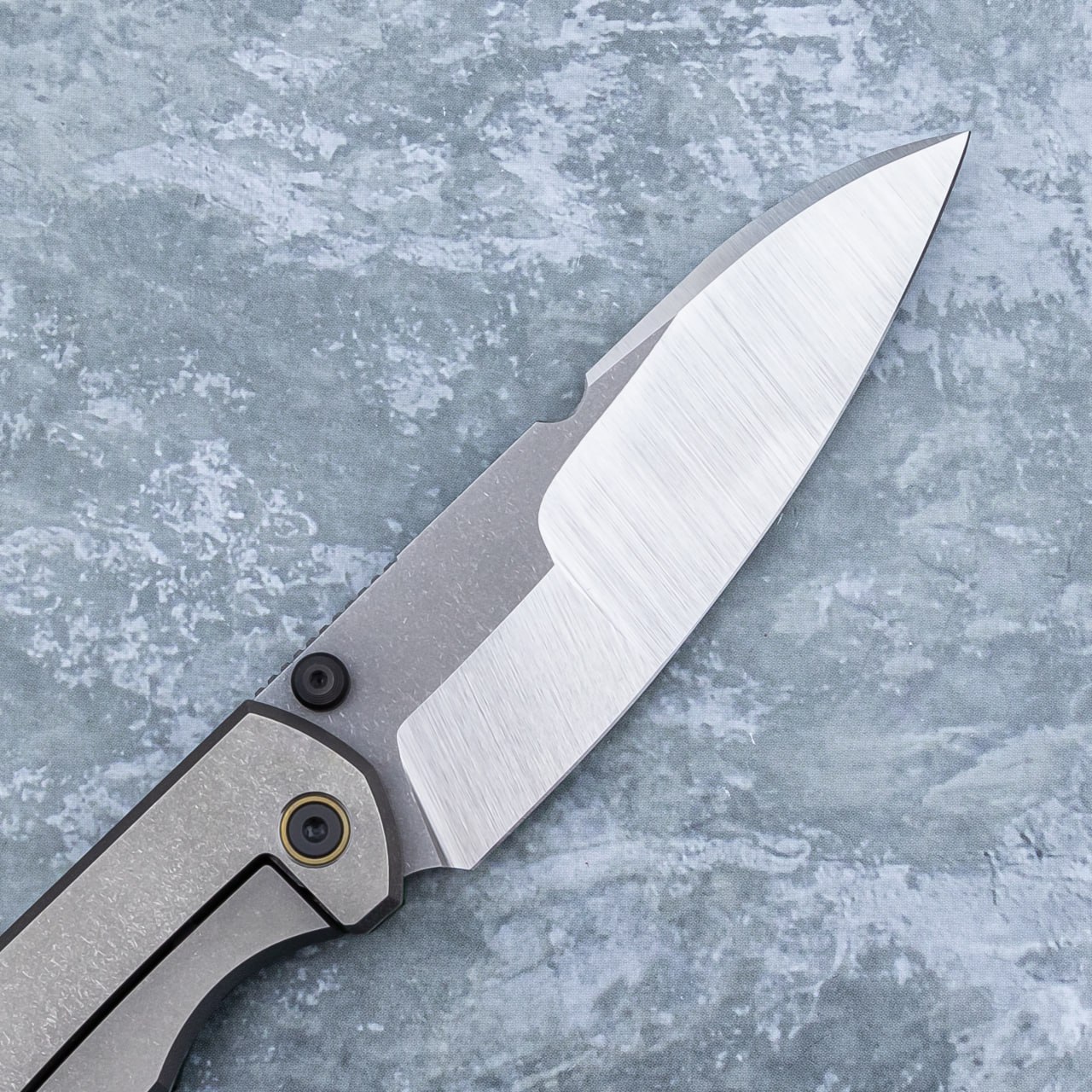 • 钢材 - QPM420V • 刀片 - 99 毫米。 • 背面厚度 - 4 毫米。 • 尖头 - 0.3-0.5 毫米。 • 硬度 - 63-64 赫兹。 • 总长度 - 220 毫米。 • 手柄厚度 - 14 毫米。 • 枢轴点 - 青铜穿孔垫圈。 • 手柄 - 钛合金 + 碳钢。 • 重量 - 169 克。