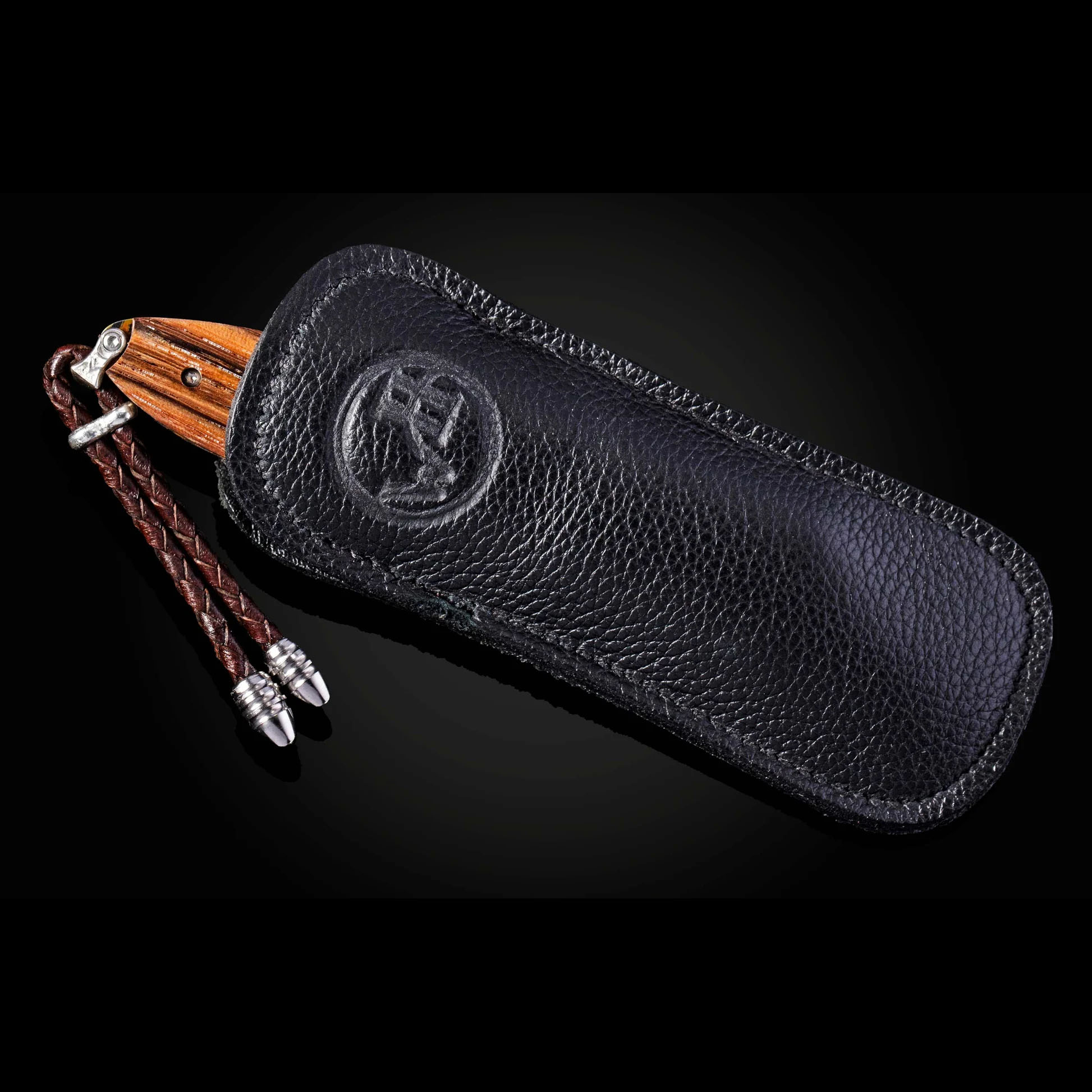 产品详情 Lancet“斑马”刀采用热色“波纹木目”材质,并镶嵌斑马木。刀身惊艳,采用威廉·亨利标志性的“铜波纹”大马士革钢打造,刀芯采用VG-5钢,锋利无比。单手按钮锁和拇指螺柱镶嵌烟晶宝石。 Lancet...