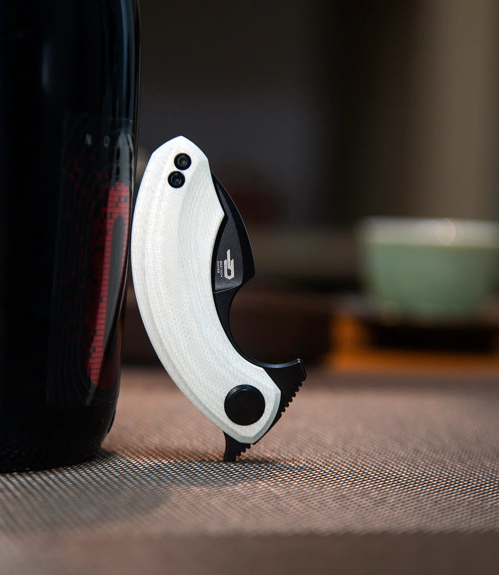 规格 刀片材质:14C28N 刀片表面处理:黑色石洗 手柄材质:G10 夹子材质:钢 描述:衬里锁 手柄颜色:白色 滚珠轴承:陶瓷 总长度:3.46 英寸(88 毫米) 闭合长度:3.01 英寸(76....