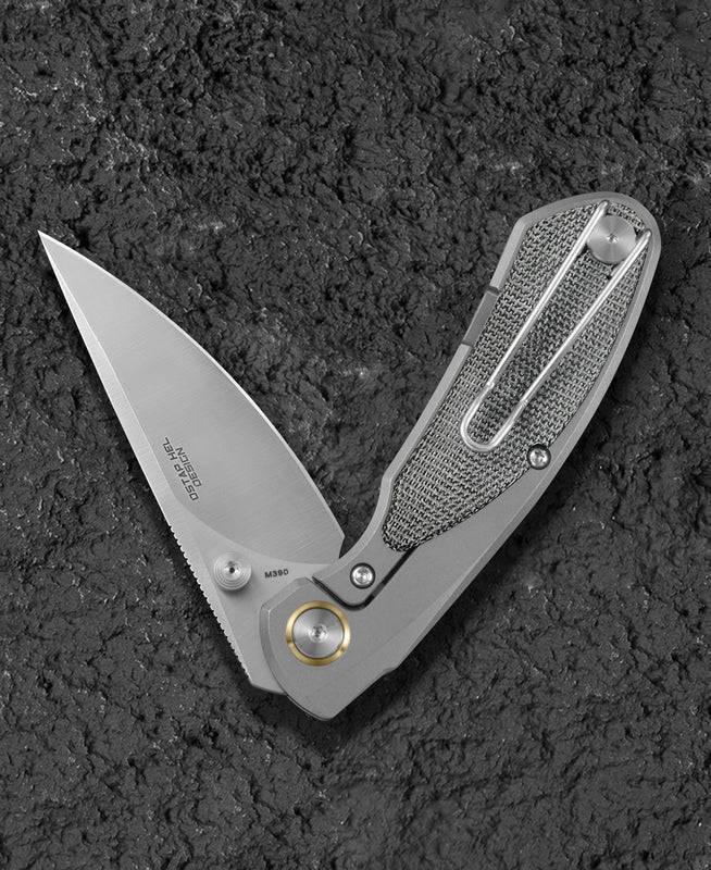 规格 刀片材质:M390 刀片表面处理:缎面 手柄材质:钛+黑色帆布 Micarta 镶嵌 描述:帧锁定 手柄颜色:灰色 总长度:6.5 英寸(165 毫米) 闭合长度:3.8 英寸(96 毫米) 刀片长度:...
