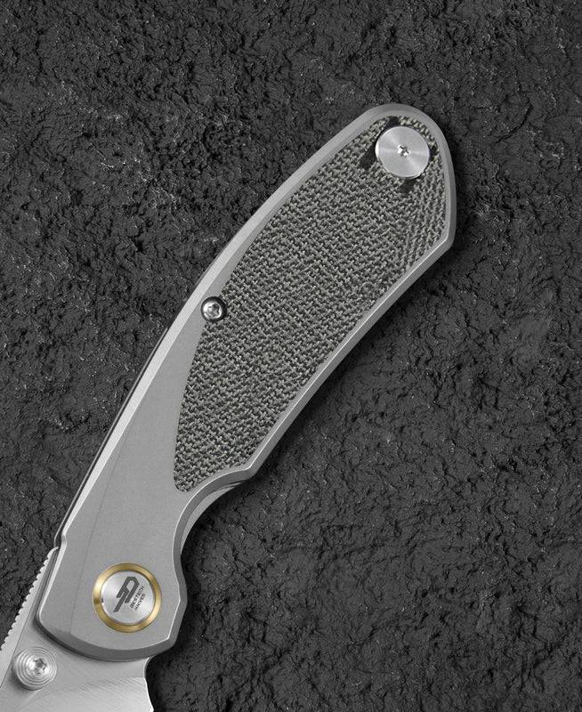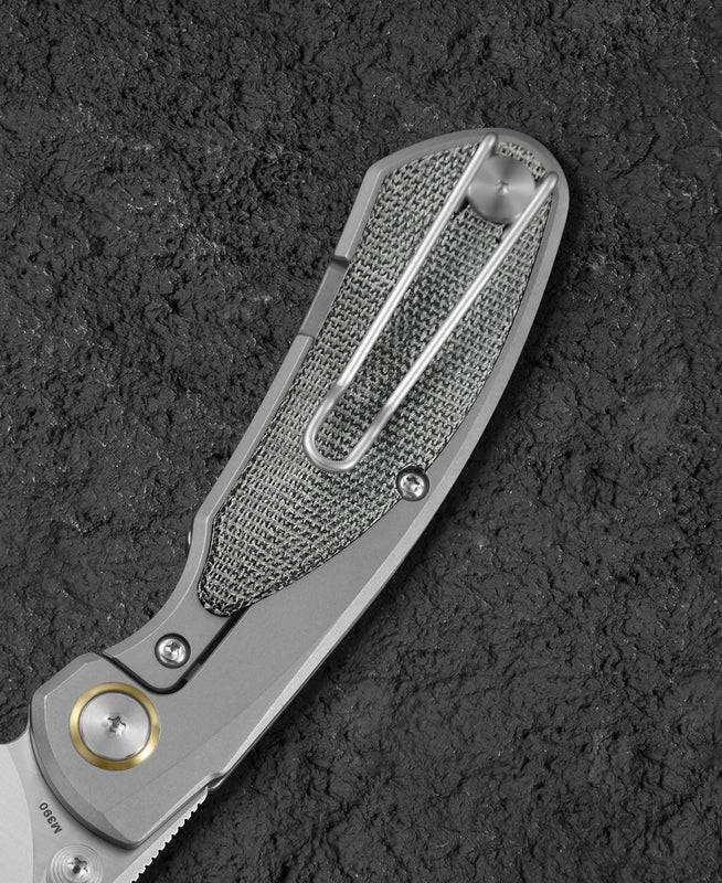 手柄材质:钛+黑色帆布 Micarta 镶嵌