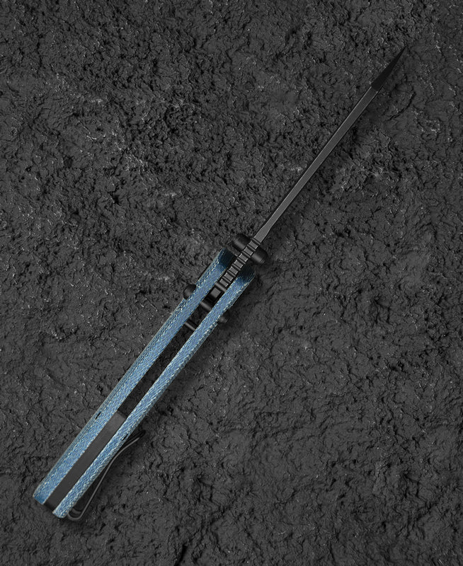 规格 刀片材质:D2 刀片表面处理:黑色石洗 手柄材质:米卡塔 夹子:可逆钢丝夹,钢 描述:酒吧锁 手柄颜色:蓝色 滚珠轴承:陶瓷 总长度:7.91 英寸(201 毫米) 闭合长度:4.41 ...