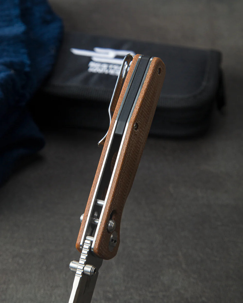规格 刀片材质:D2 刀片表面处理:缎面 手柄材质:米卡塔 夹子材质:钢 描述:酒吧锁 手柄颜色:自然色 滚珠轴承:陶瓷 总长度:7.1 英寸(180 毫米) 闭合长度:4.02 英寸(102 毫...