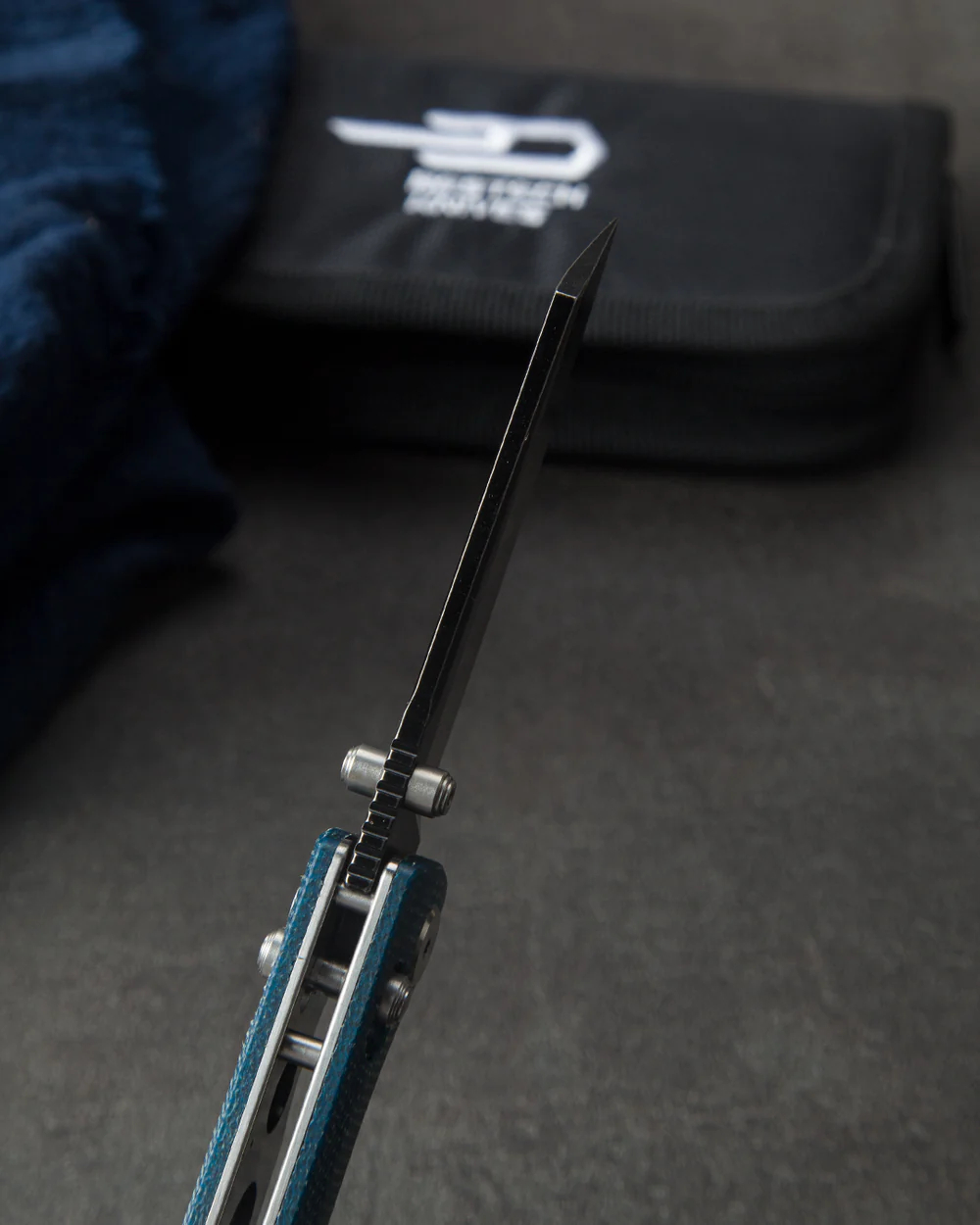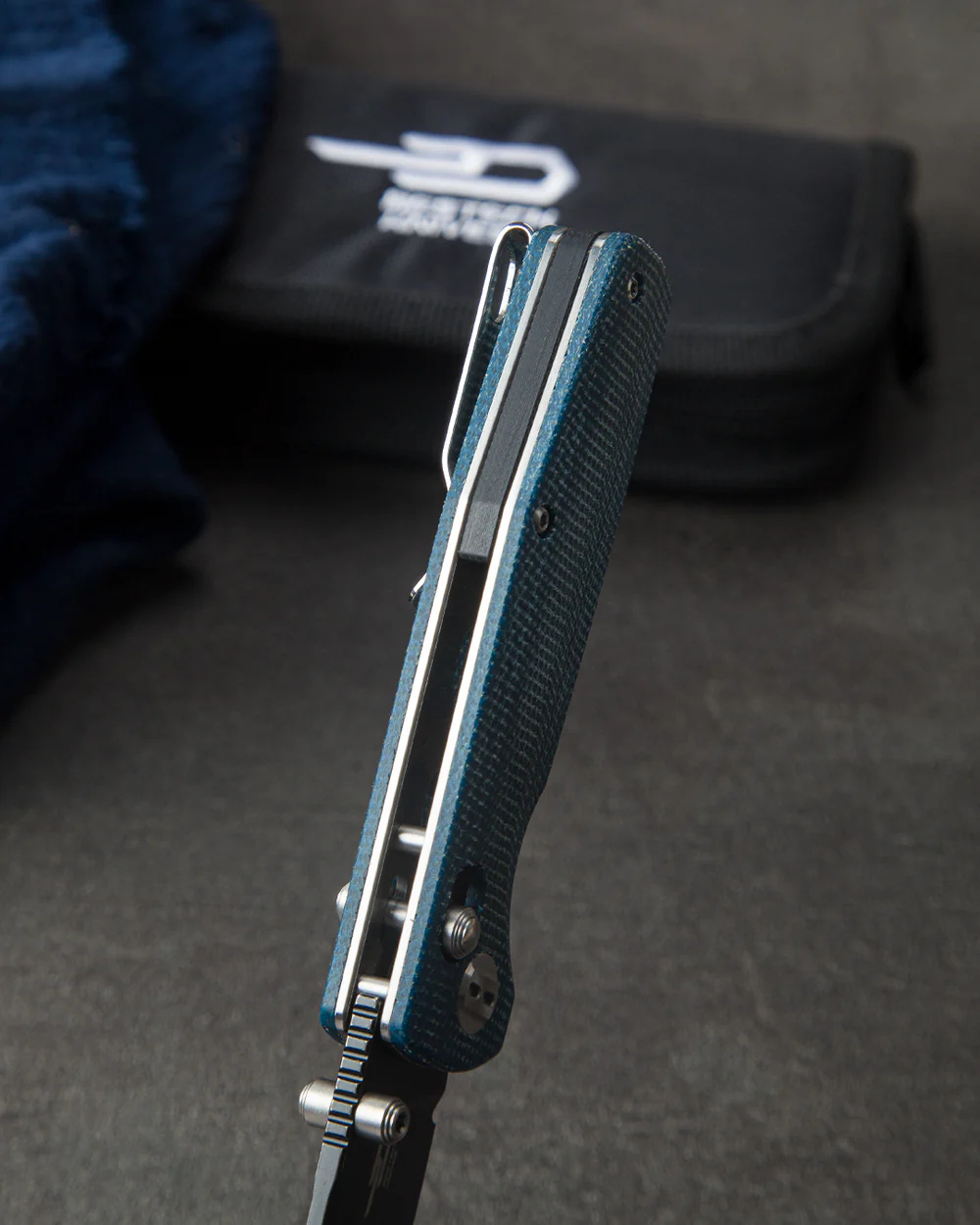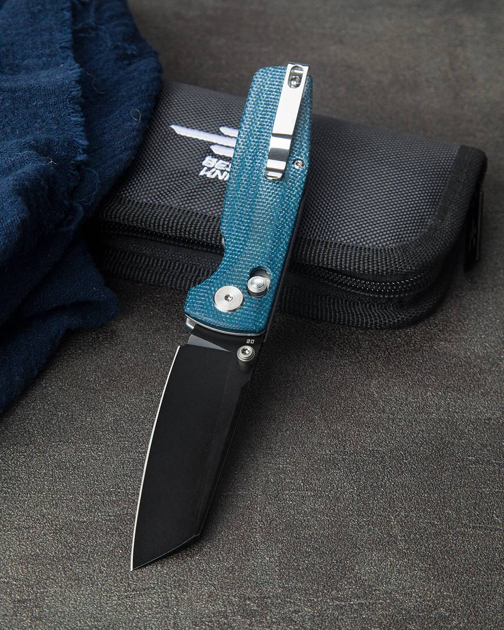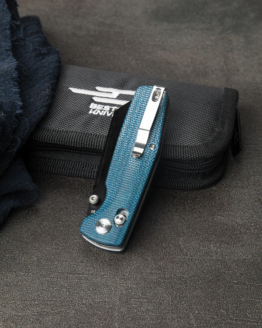 规格 刀片材质:D2 刀片表面处理:黑色石洗 手柄材质:米卡塔 夹子材质:钢 描述:酒吧锁 手柄颜色:蓝色 滚珠轴承:陶瓷 总长度:7.1 英寸(180 毫米) 闭合长度:4.02 英寸(102 ...