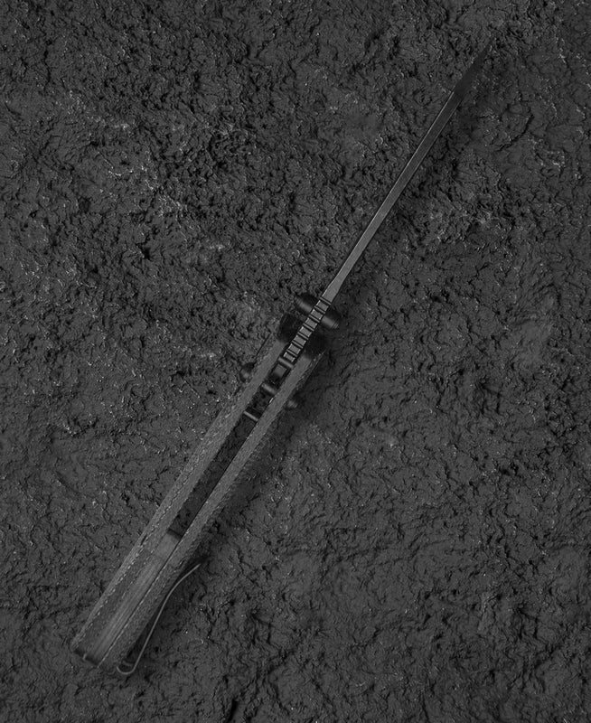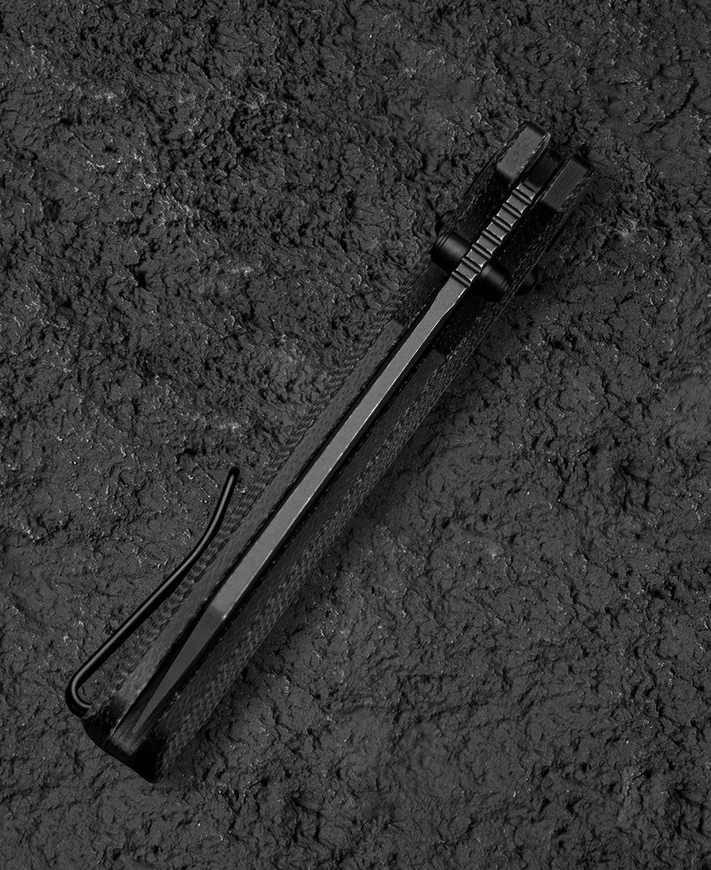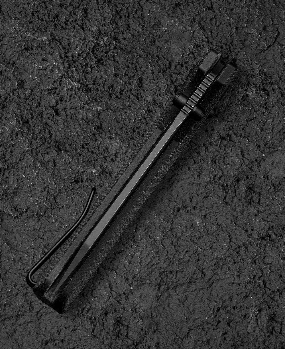 规格 刀片材质:D2 刀片表面处理:黑色石洗 手柄材质:米卡塔 夹子:可逆钢丝夹,钢 描述:酒吧锁 手柄颜色:黑色 滚珠轴承:陶瓷 总长度:7.91 英寸(201 毫米) 闭合长度:4.41 ...