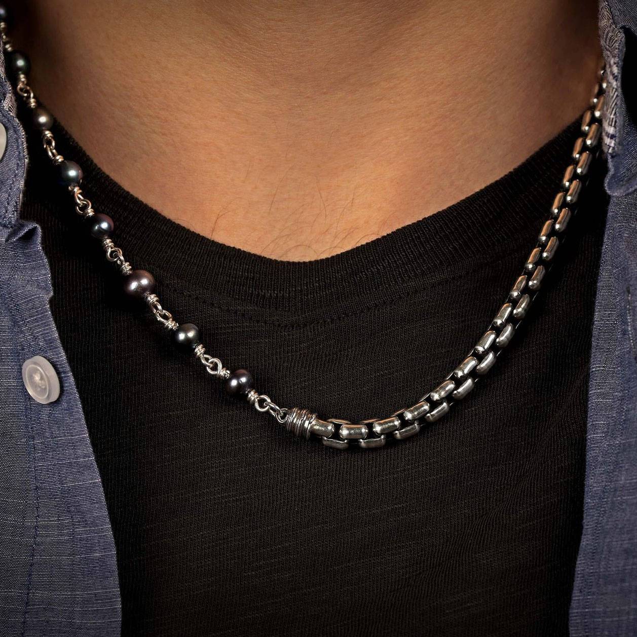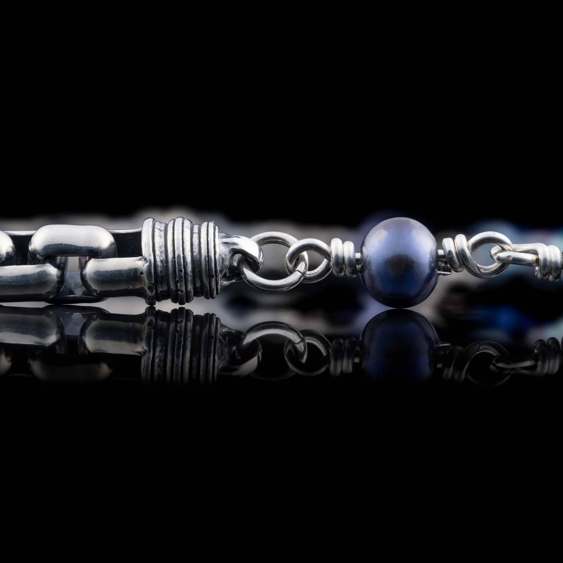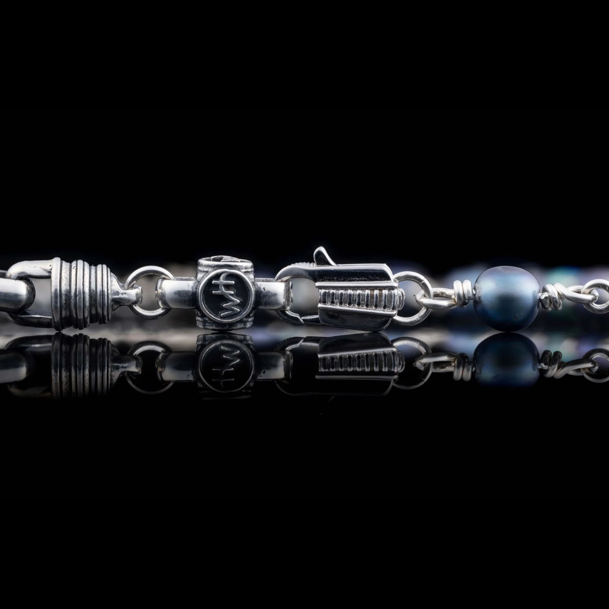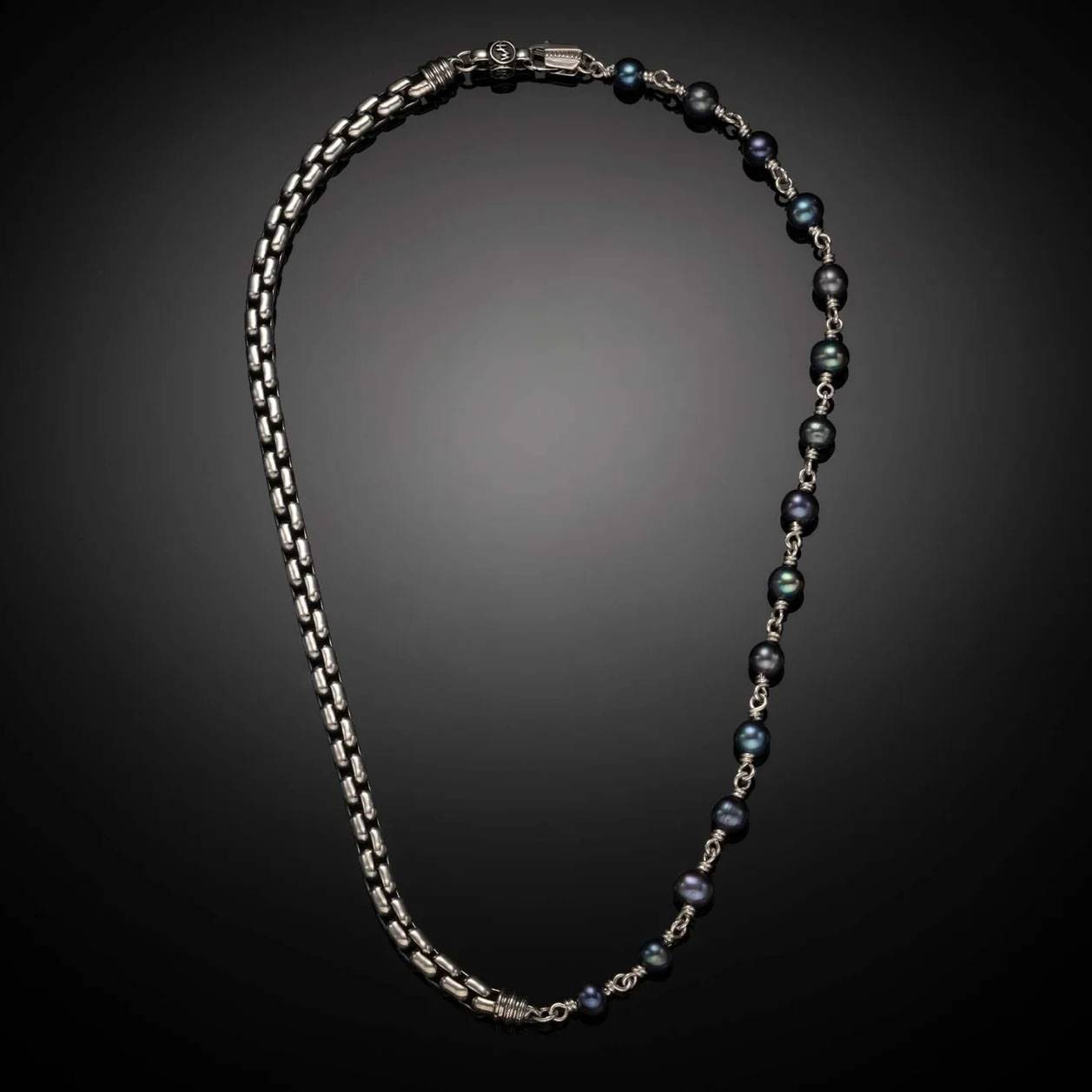 Rainstorm 巧妙地平衡了两种截然不同的美学风格。首先,我们甄选优质孔雀珍珠,搭配手工缠绕的纯银链条,演绎出灰、绿、红、紫等多种微妙的色彩。其次,这条精致的链条搭配一条厚重的纯银威尼斯盒形链条,经氧化和轻柔抛光处理,打造隽永经典的造型。最后,搭配我们精心打造的纯银搭扣,无论您身处何种心情,都能轻松佩戴。