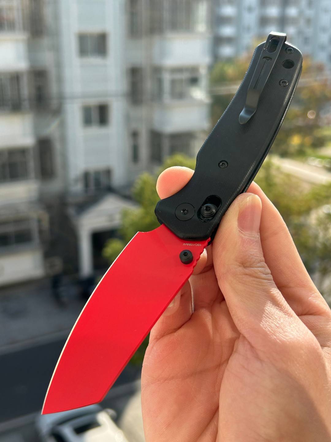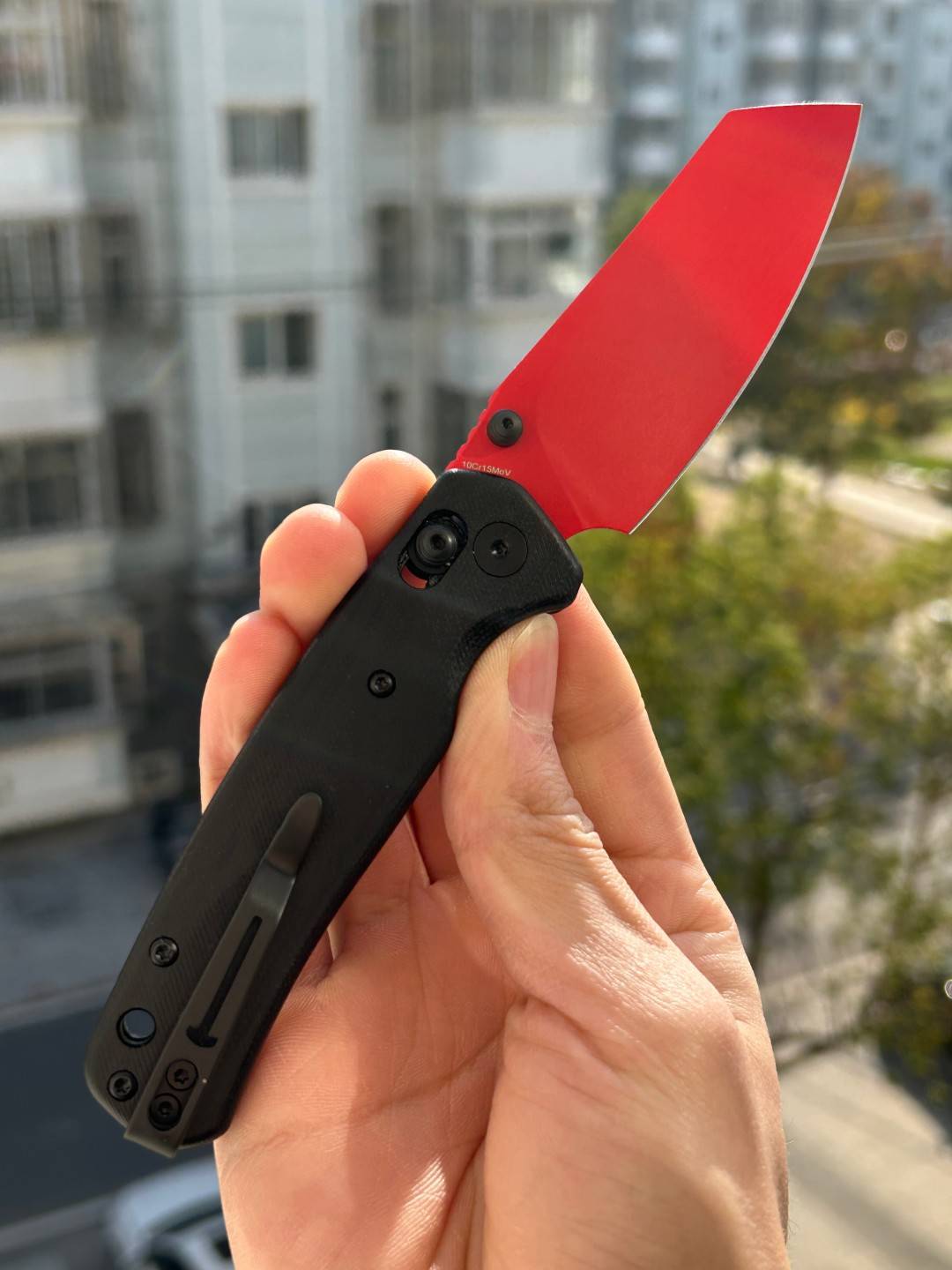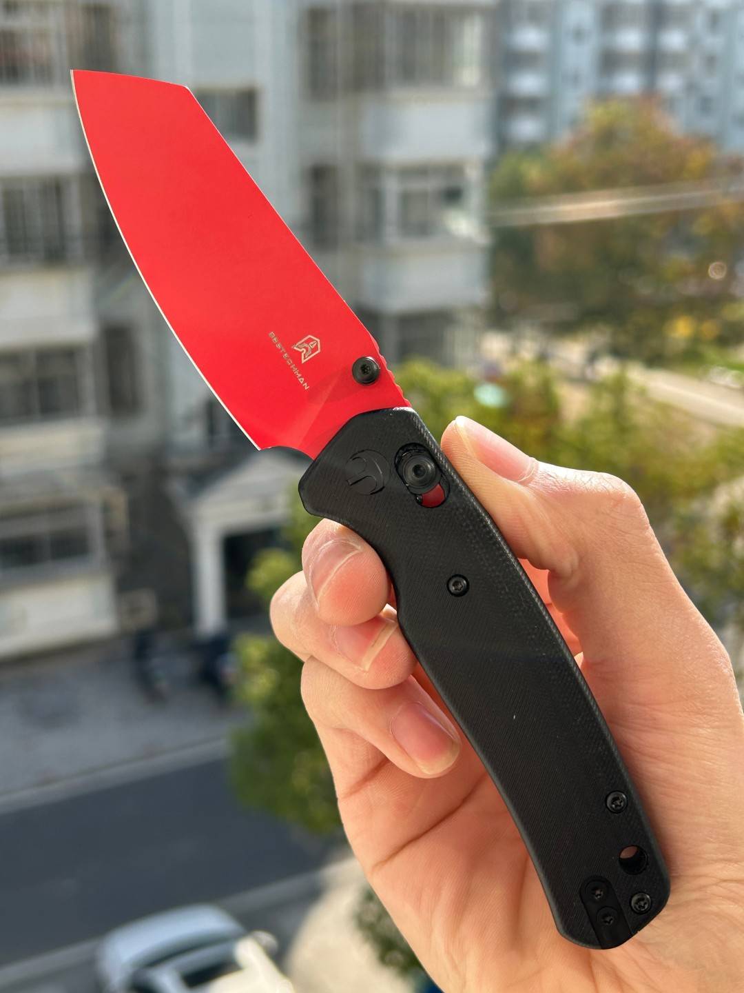 刀片长度:3.15 英寸(80 毫米) 手柄长度:4.055 英寸(103 毫米) 总长度:7.205 英寸(183 毫米) 刀片厚度:0.091 英寸(2.3 毫米) 刀片材质:10Cr15MoV 钢 刀片表面处理:红色喷漆 手柄材质:黑色 G10 锁定机构:B-Lock 刀片硬度:59-61 口袋夹:深携带,左/右携带 刀重量:2.12 盎司(60 克) 中国制造