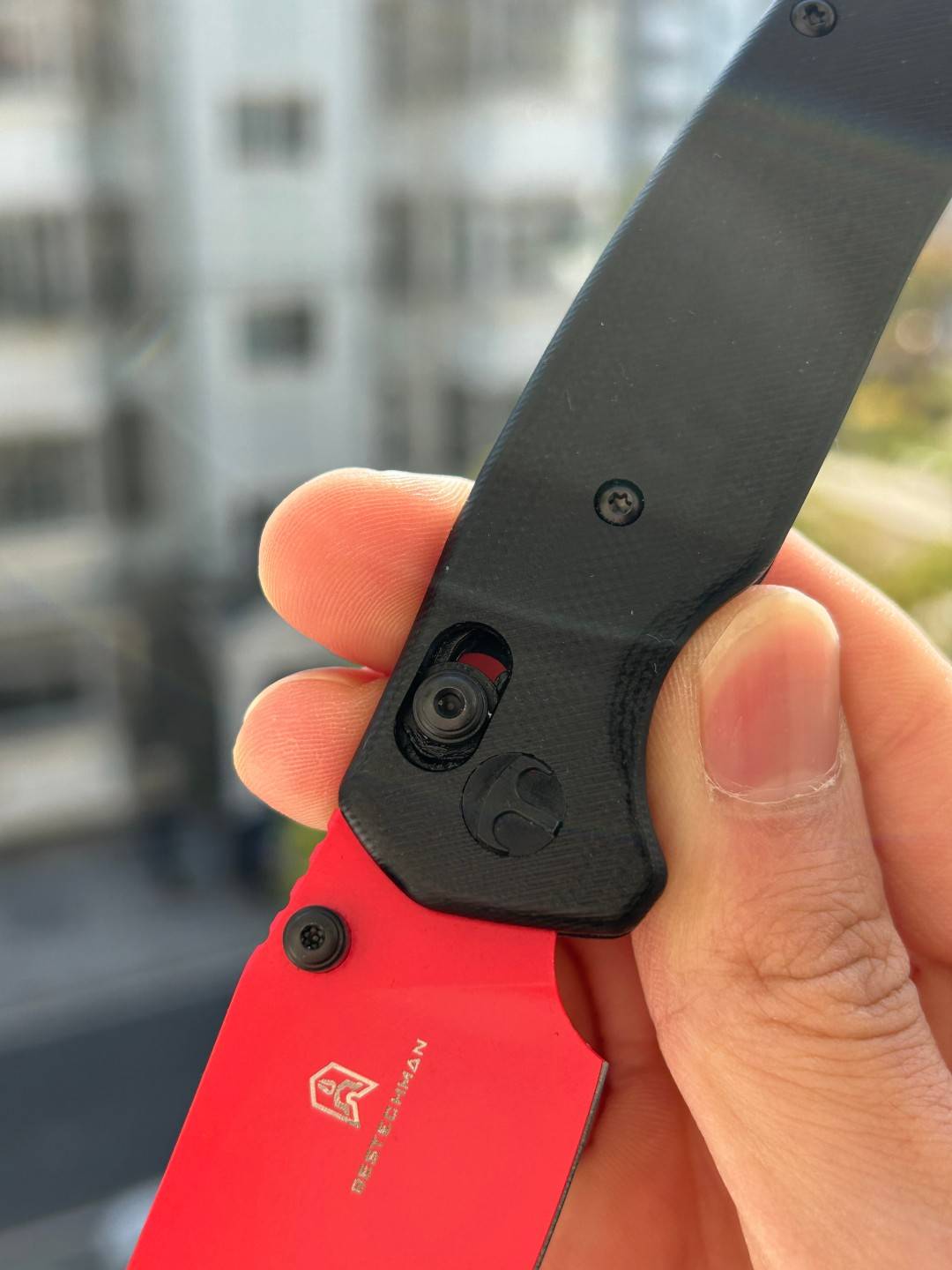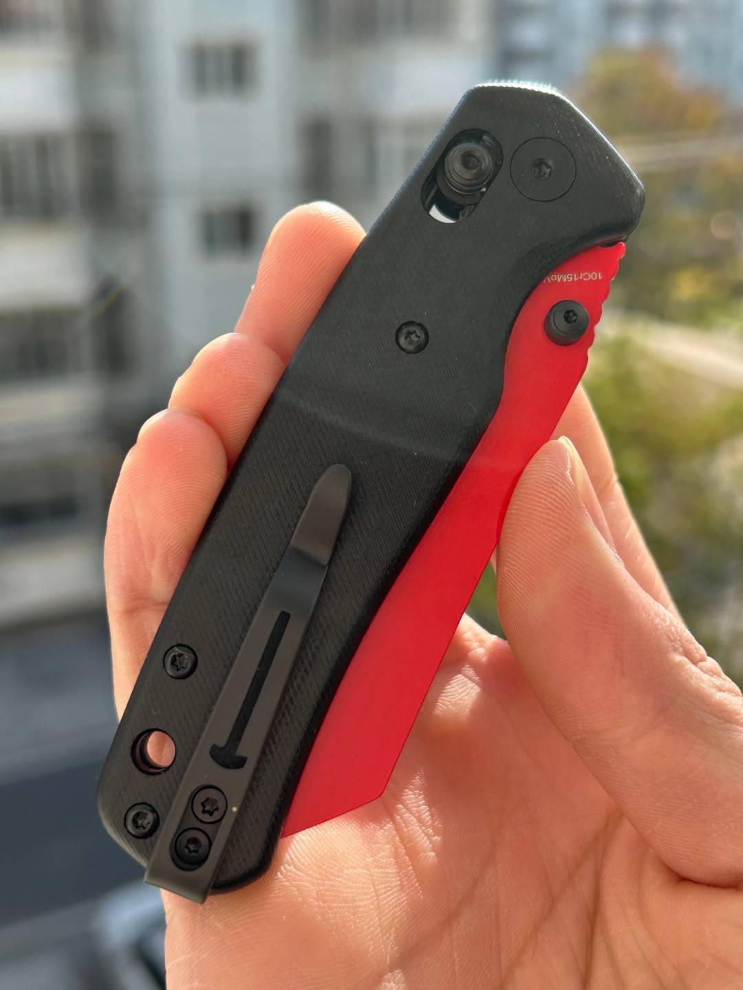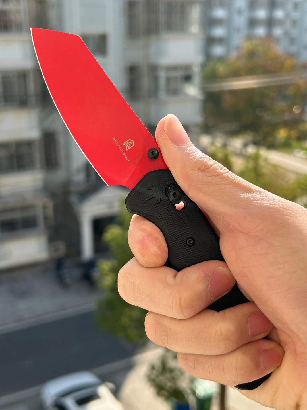 刀片长度:3.15 英寸(80 毫米) 手柄长度:4.055 英寸(103 毫米) 总长度:7.205 英寸(183 毫米) 刀片厚度:0.091 英寸(2.3 毫米) 刀片材质:10Cr15MoV 钢 刀片表面处理:红色喷漆 手柄材质:黑色 G10 锁定机构:B-Lock 刀片硬度:59-61 口袋夹:深携带,左/右携带 刀重量:2.12 盎司(60 克) 中国制造