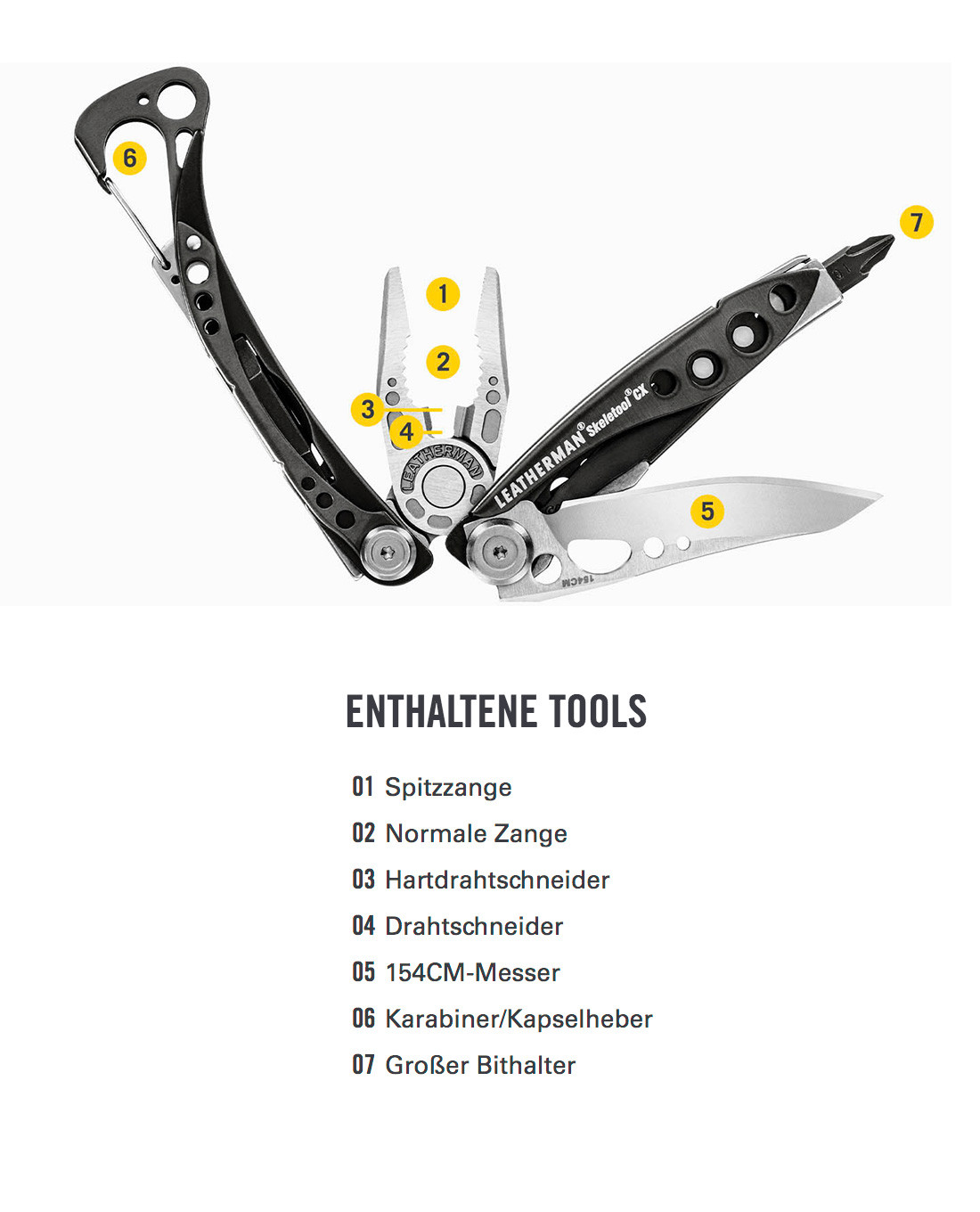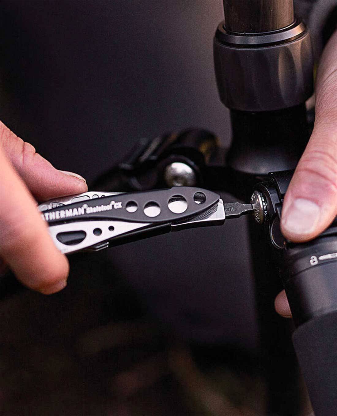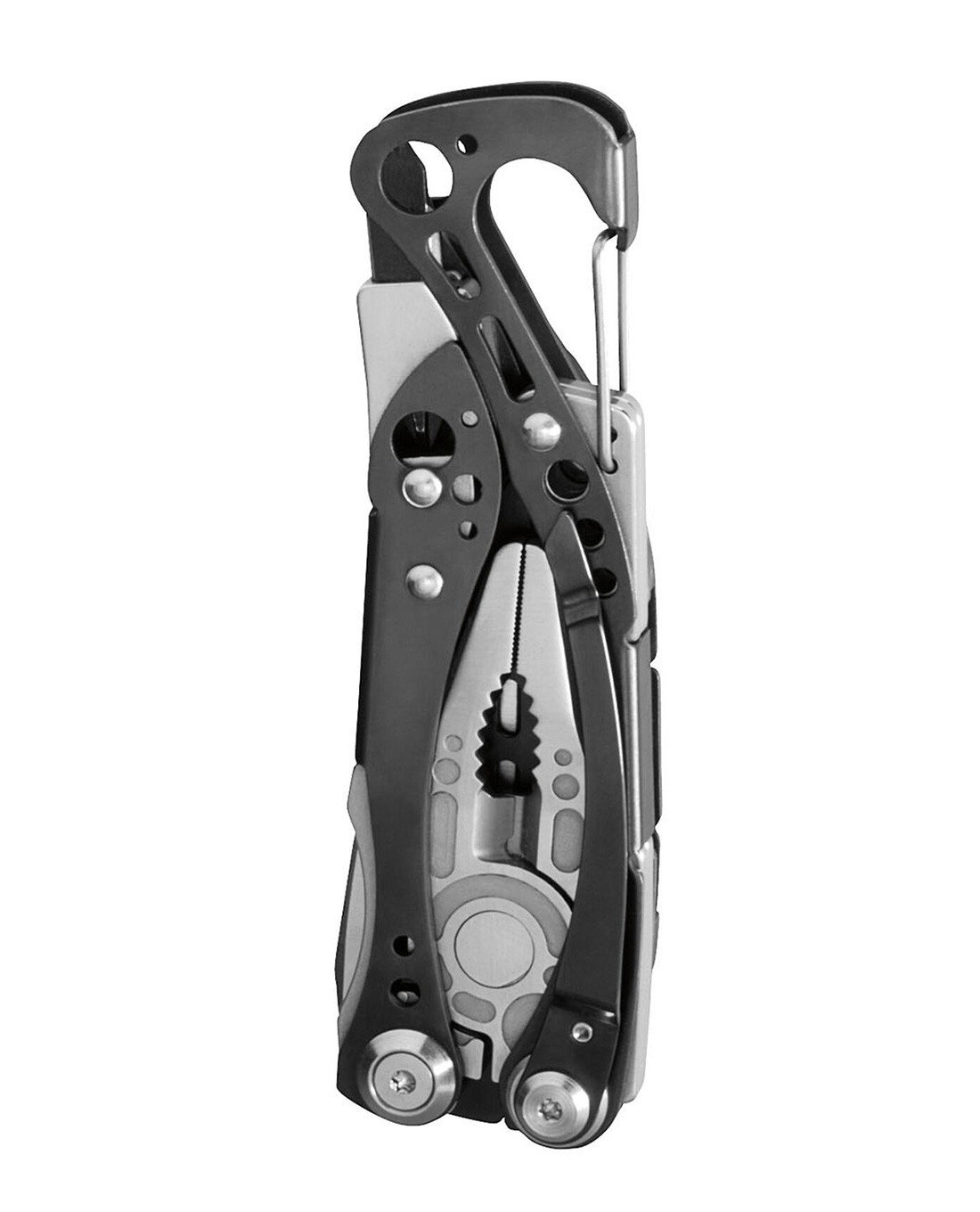 Leatherman Skeletool CX多功能工具采用 154CM 不锈钢打造,兼具卓越的耐腐蚀性和锋利度保持性,让您尽享多功能性带来的强大体验。其镂空设计轻巧便携,功能却毫不逊色。这款工具的实用性体现在其内置的登山扣上,方便您快速将其固定在装备上。登山扣还可以兼作开瓶器,让您随时畅饮。安全夹可将工具固定在您的口袋或腰带上,需要时可轻松取下。6.6厘米的单手开合刀片无需展开工具即可快速取用,并可牢固锁定以确保安全操作,单手即可轻松闭合。批头收纳槽位于工具外部,可容纳两个随附的双头批头,未使用的批头则安全地收纳在手柄内。搭配单独出售的Leatherman 批头套装,即可将您的口袋变成一个移动工作台,进一步提升您的工具箱功能。完全展开后,这款组合钳可作为尖嘴钳、普通钳、剪线钳和硬线钳使用。