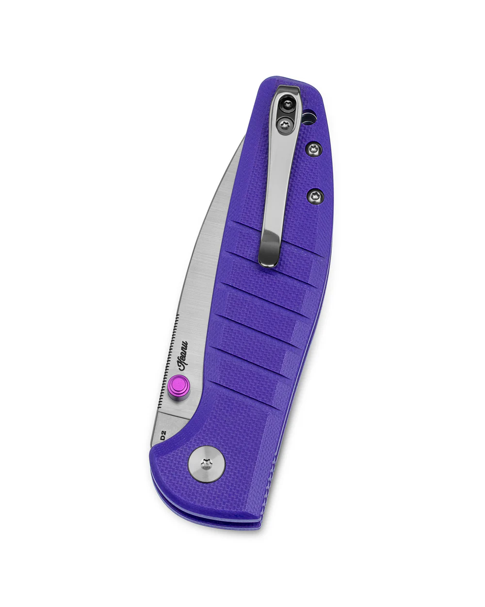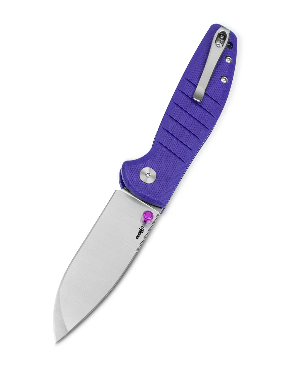 刀片长度:2.83 英寸(72 毫米) 手柄长度:4.05 英寸(103 毫米) 总长度:6.88 英寸(175 毫米) 刀片厚度:0.11 英寸(2.8 毫米) 刀片材质:D2 钢 刀片表面处理:缎面 + 石洗 手柄材质:紫色 G10 锁定机构:按钮锁 口袋夹:深携带,左右携带 重量:71g 设计师:Keanu 中国制造
