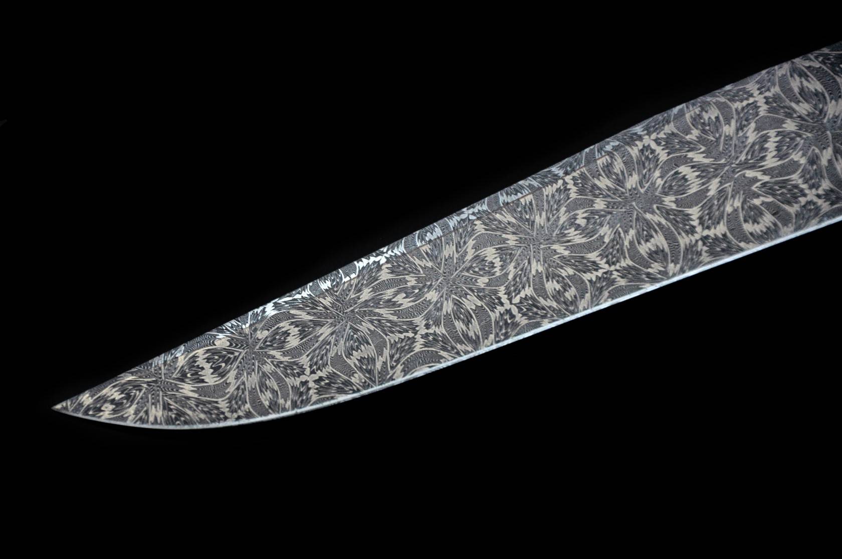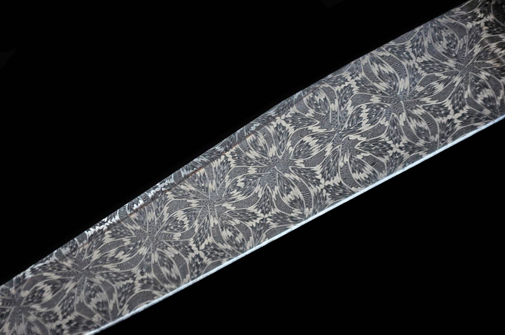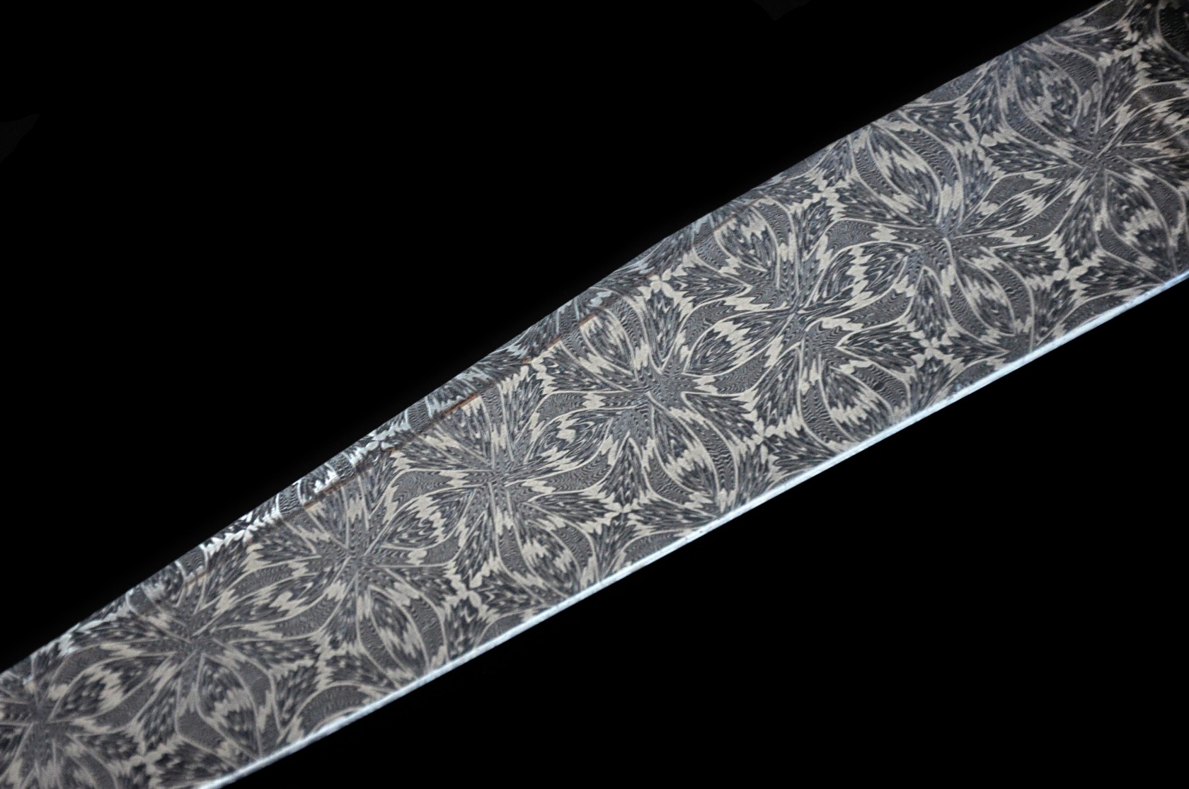 刃材:大马士革钢 (瑞典15n20+O1锻打大马士革钢)