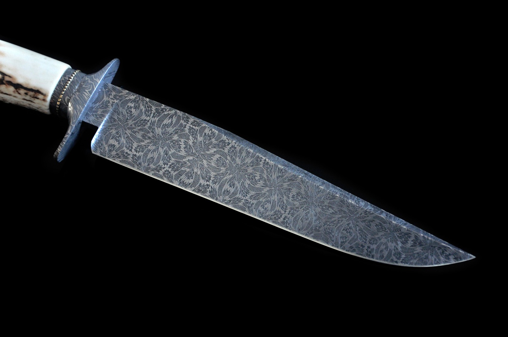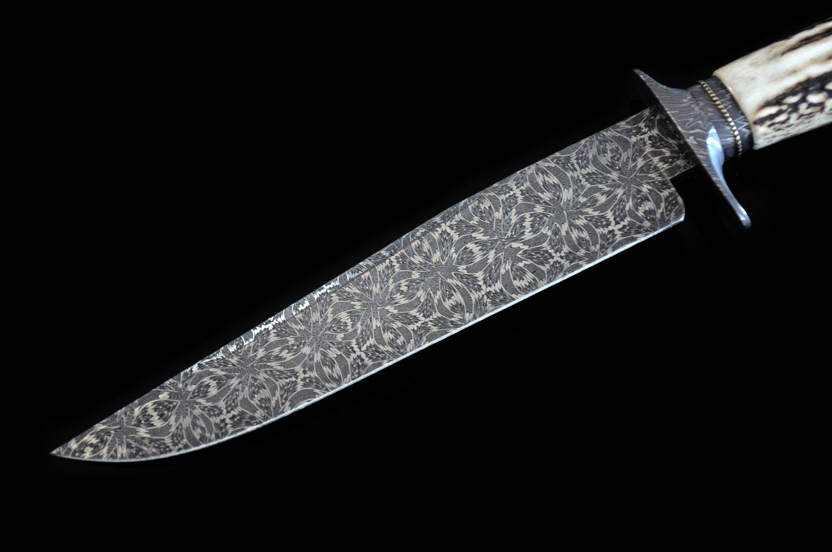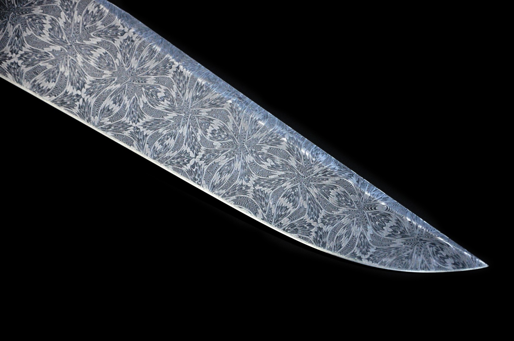 刃材:大马士革钢 (瑞典15n20+O1锻打大马士革钢)