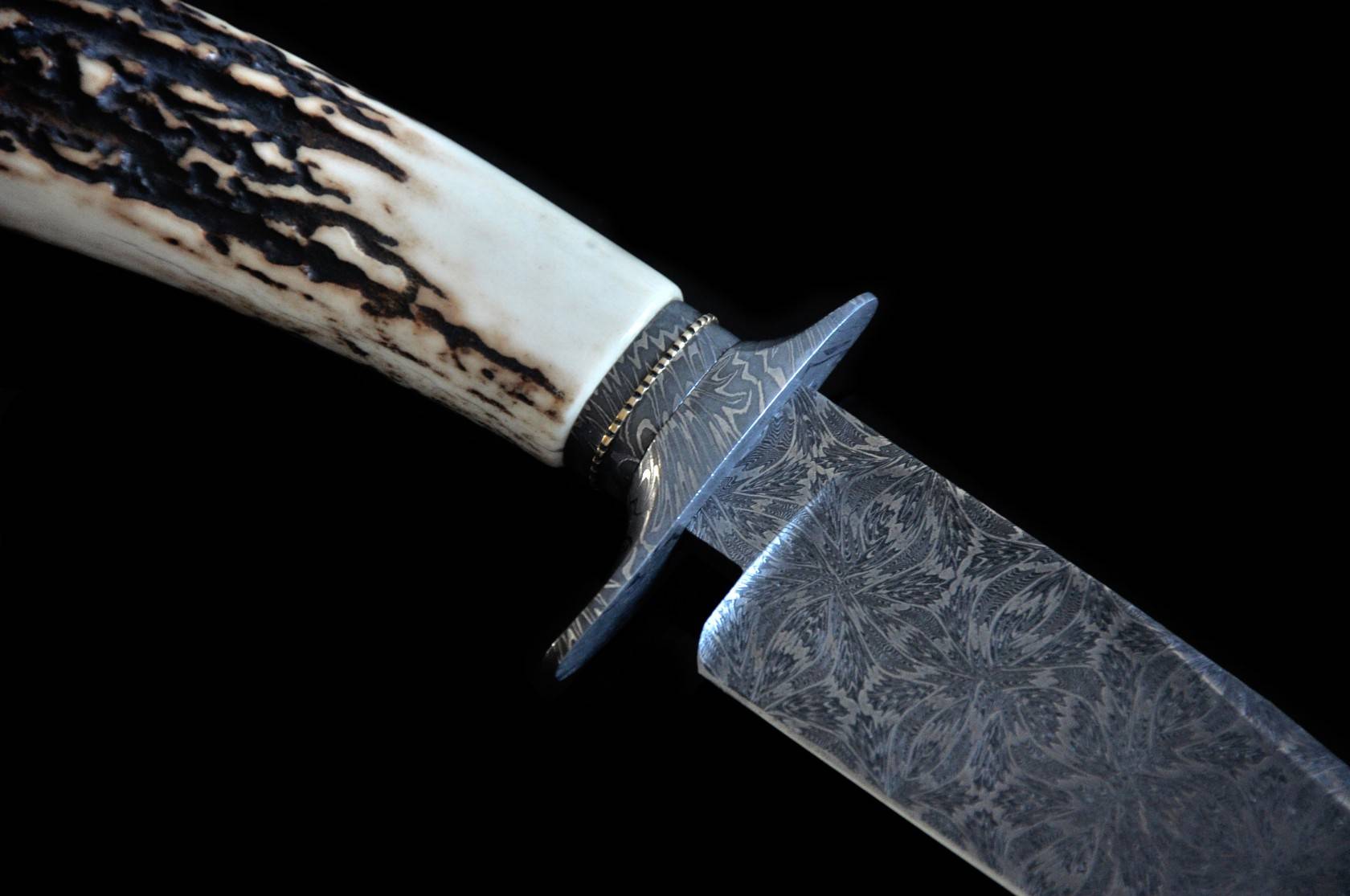 护手材质:大马士革钢 (瑞典15n20+O1锻打大马士革钢)