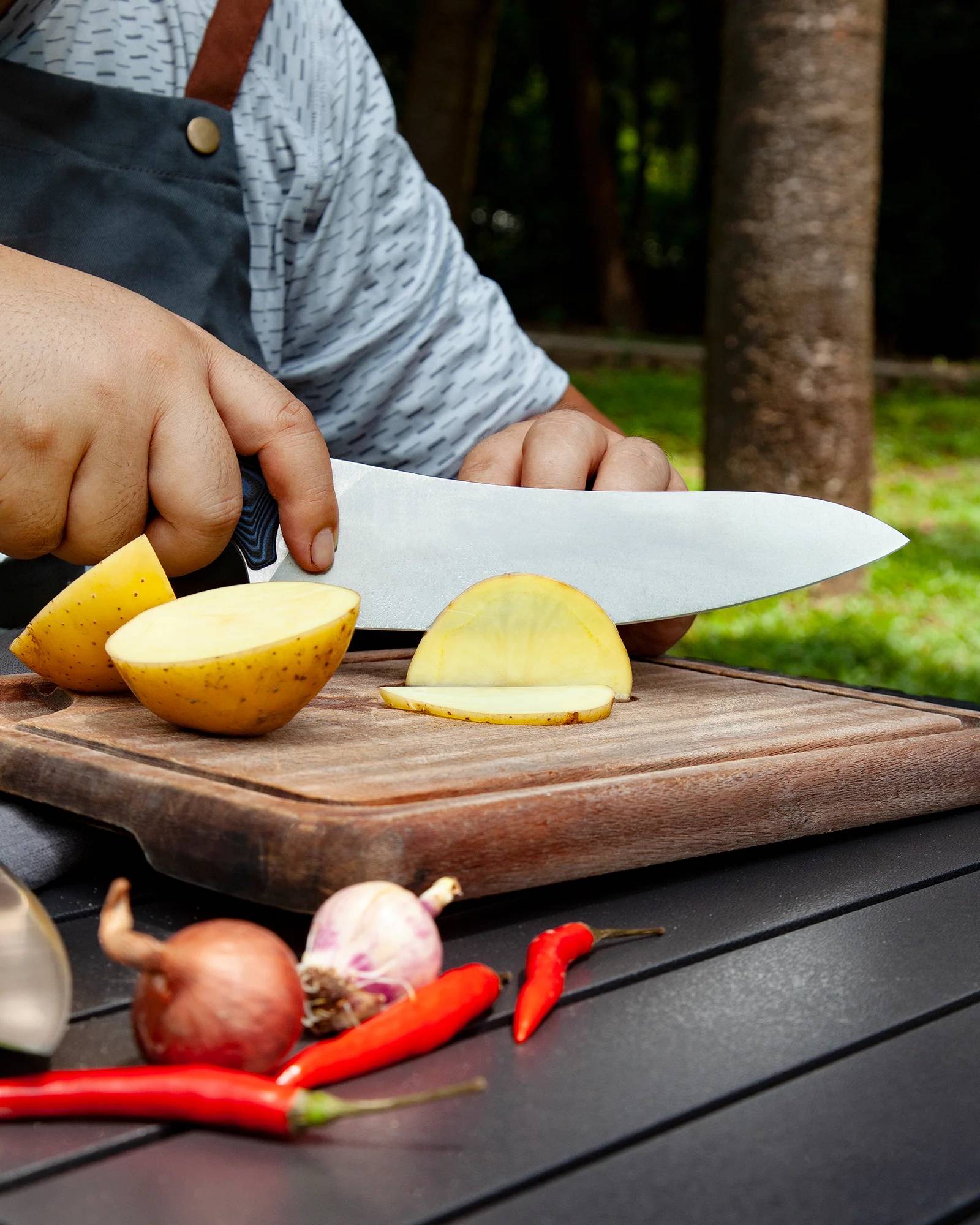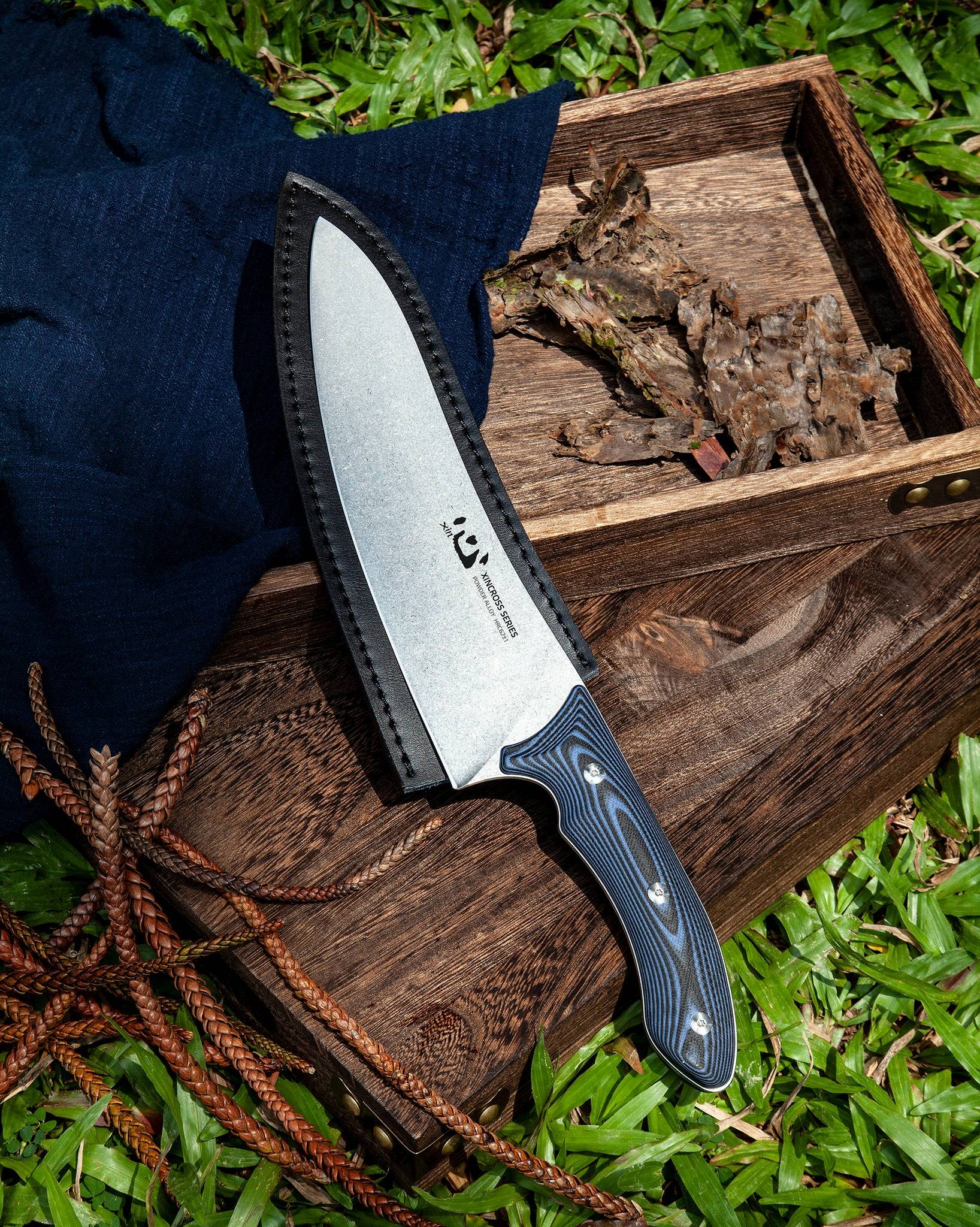 刀具类型:战术风格厨师刀 刀刃长度:210mm(8英寸) 刀刃材质:特殊粉末合金钢 握柄材质:G10 刀柄长度:140mm 全长:362毫米 刀刃厚度:2.4毫米 刃口类型:平面 刀刃表面处理:石洗 硬度:62+/-1 净重:242克 起飞重量:529克 来源:中国 型号:XC113(黑蓝配色)