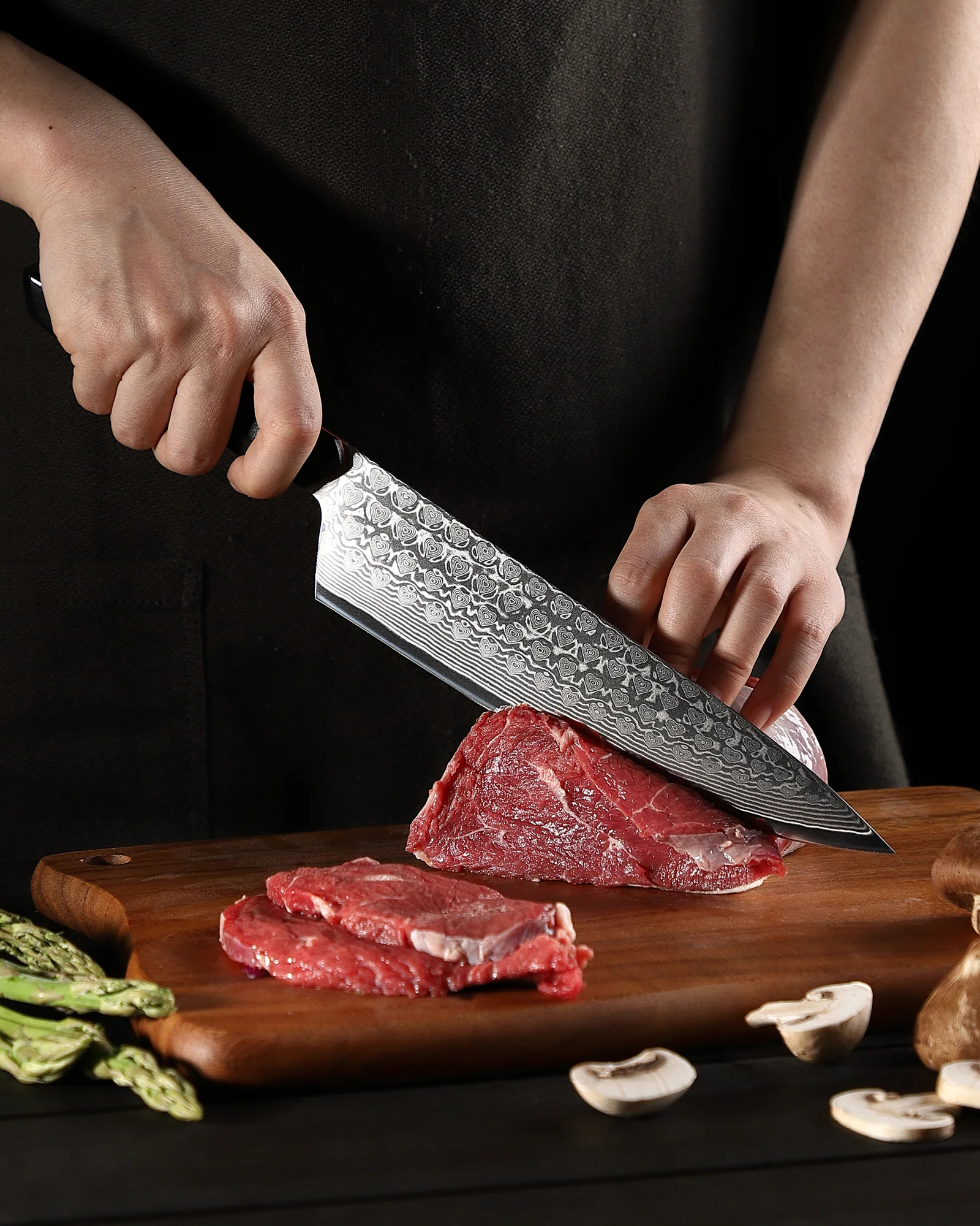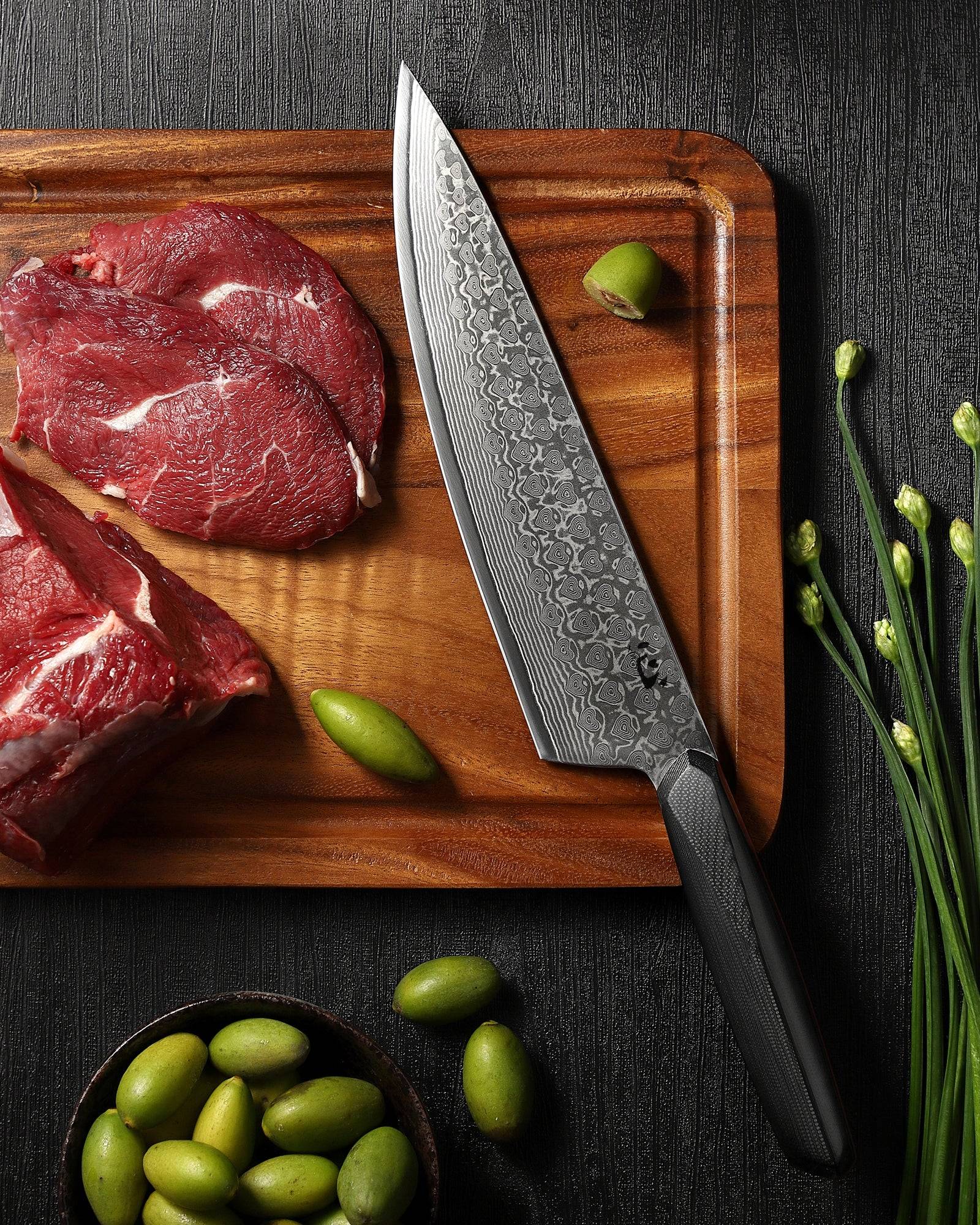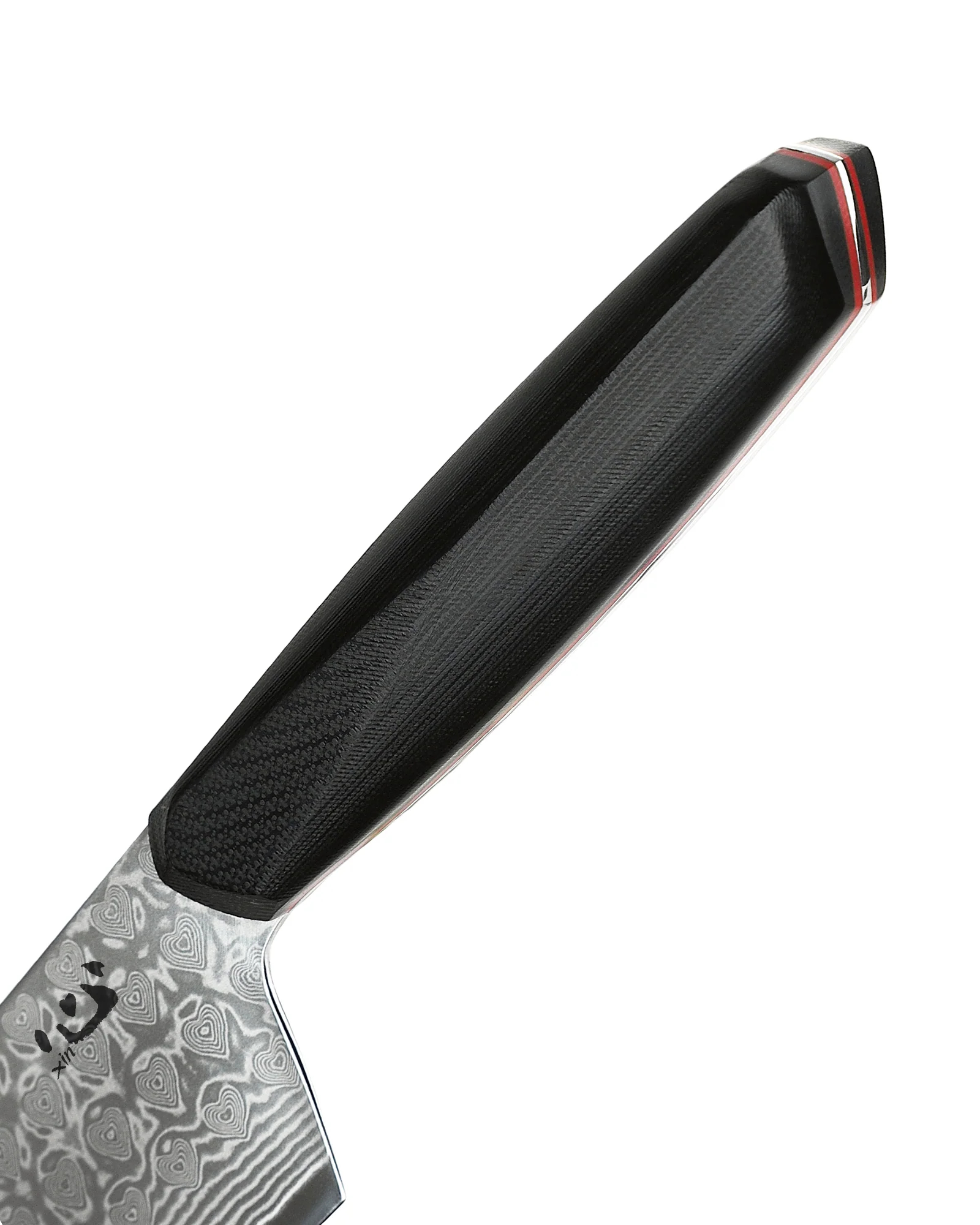 XinCore系列是Xin Cutlery团队的创新艺术品。该系列的独特外观由波兰设计师 Ostap Hel 设计,他始终致力于为厨房带来值得称赞的艺术品。刀片采用 67 层 VG10 芯大马士革钢和 61±1 洛氏硬度,镜面抛光。在特色上,独家锻造的“心形”大马士革图案为所有大马士革粉丝带来了全新的感觉。手柄采用纤维树脂 G10,经过精心手工抛光,符合人体工程学的手柄形状最大限度地提高了舒适度、抓握力和可作性。