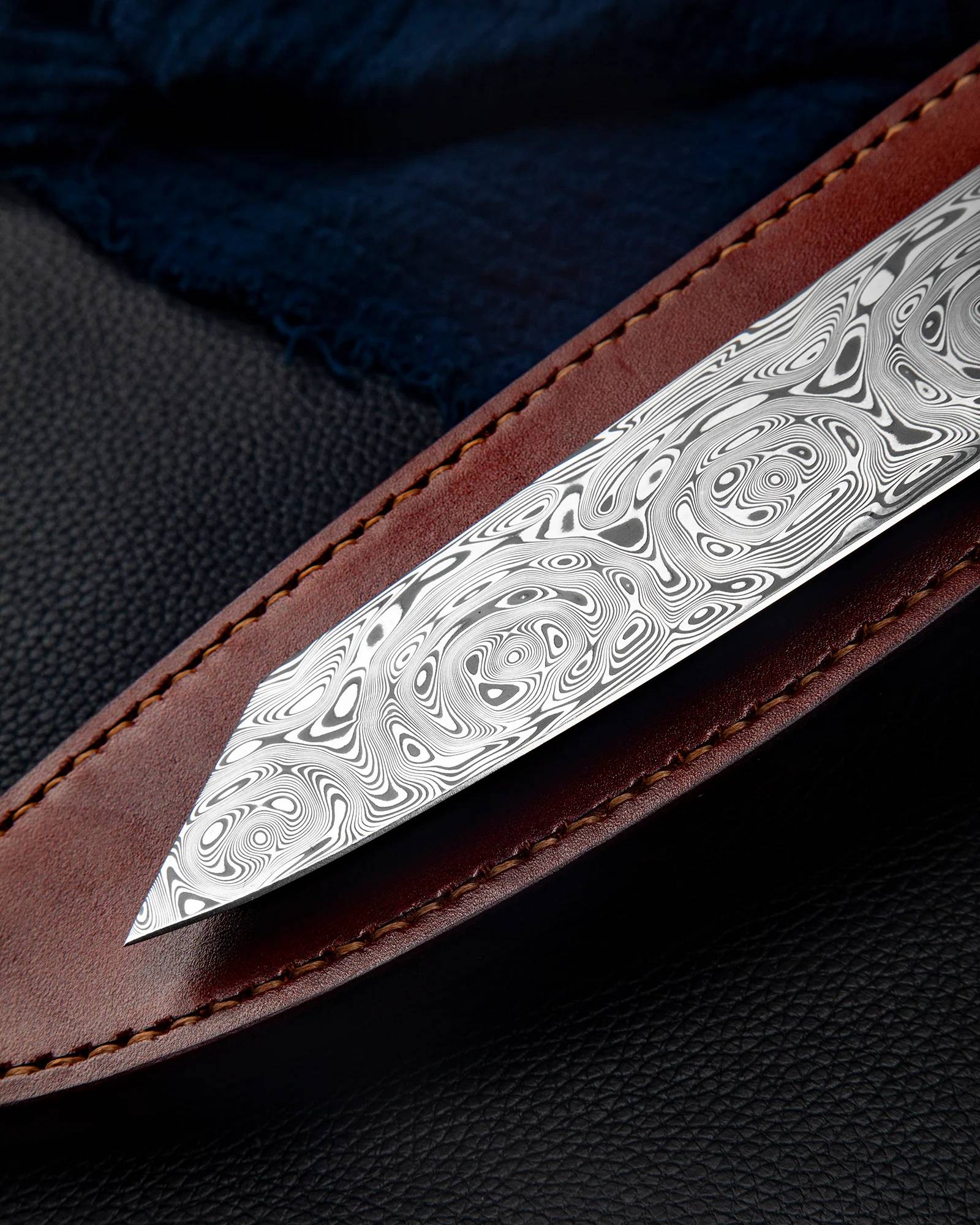 材料:Damasteel of Grosserosen Pattern 刀刃长度177毫米 酸蚀处理