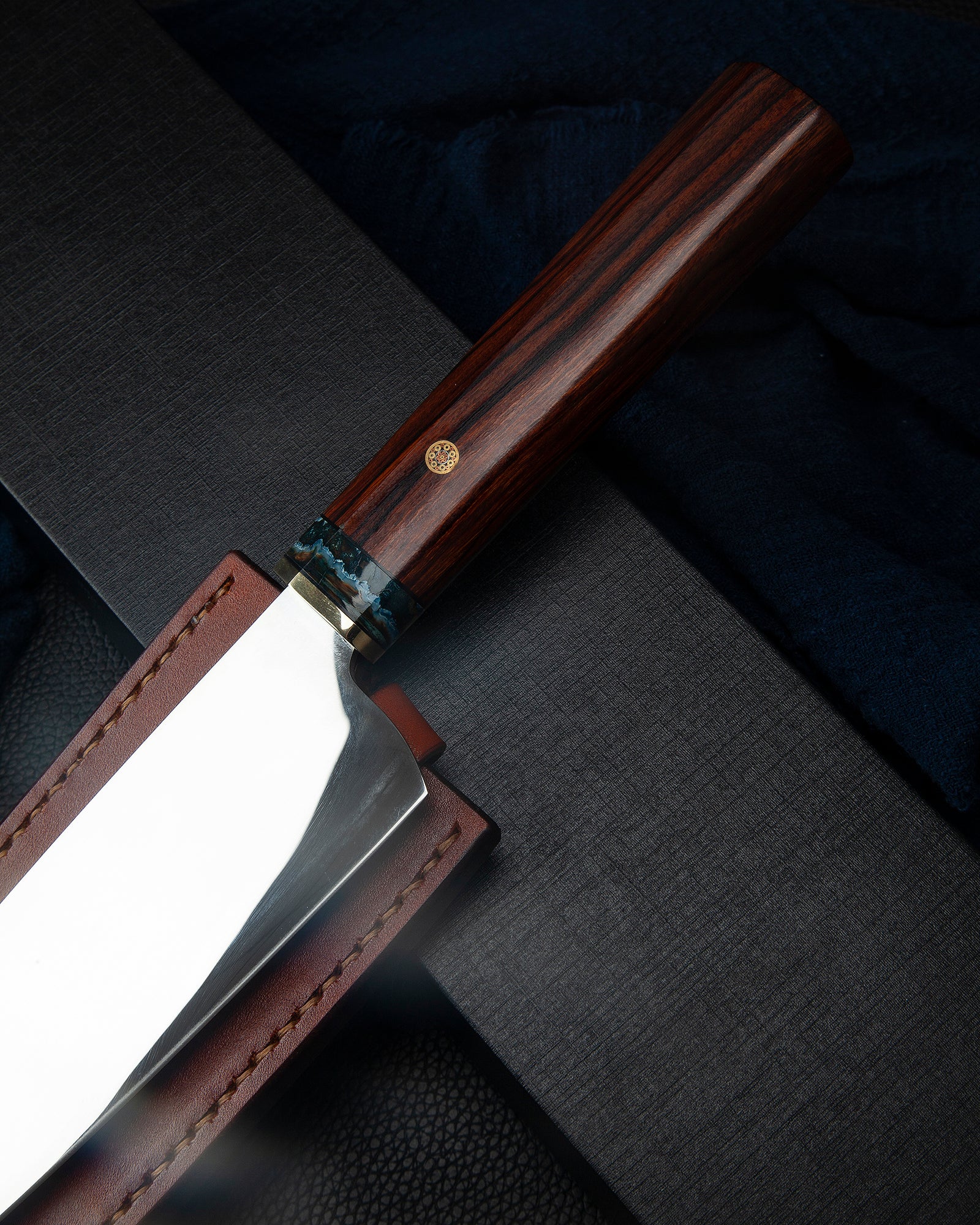 材料:铁木和猛犸象象化石 手柄长度130毫米 包装:彩色盒子,内含用户说明/保修卡、一块清洁布和一只皮革套。