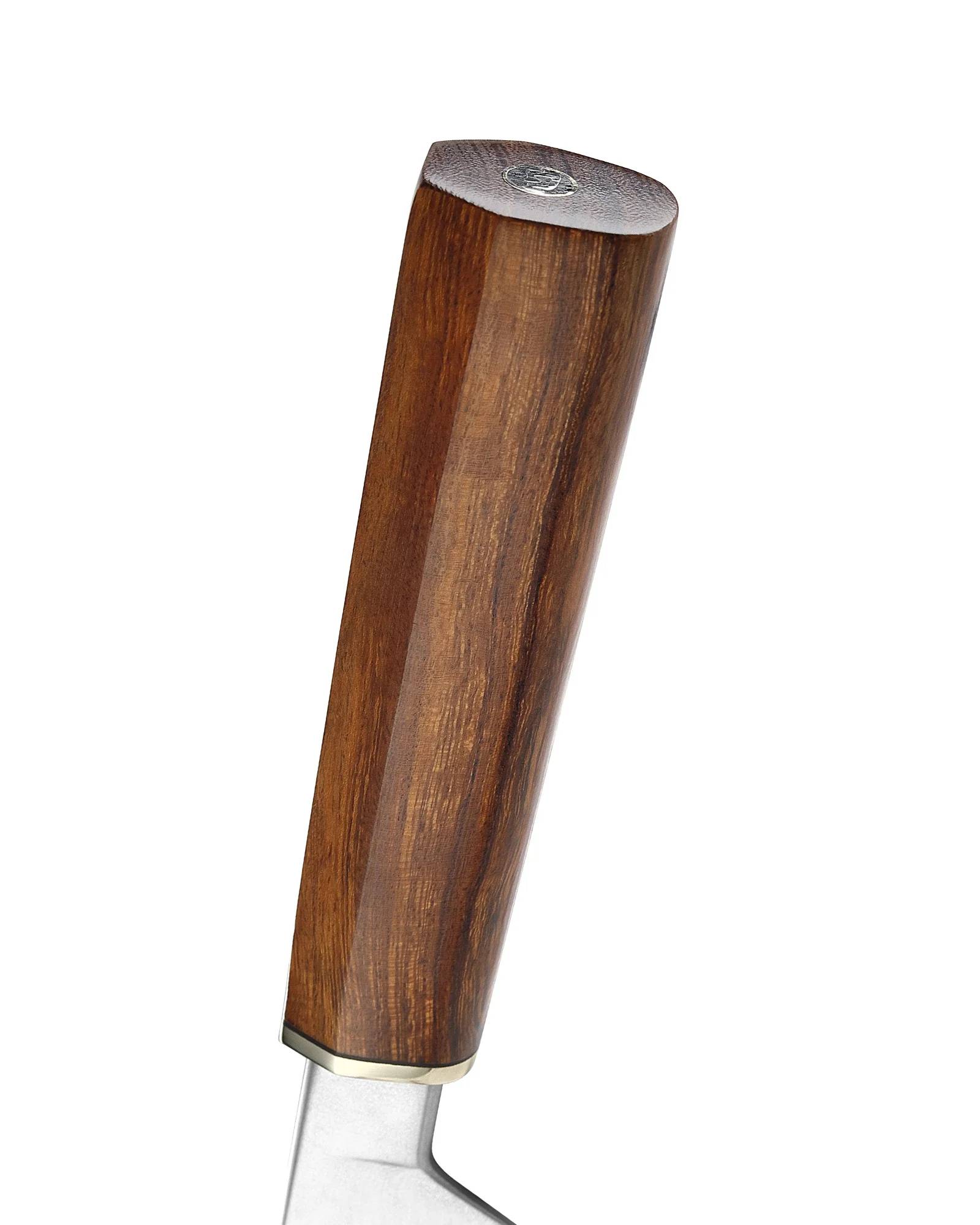 我们用天然铁木做手柄,接合处用黄铜垫片。整个刀身是全柄结构,足够方便处理灵活切割任务。